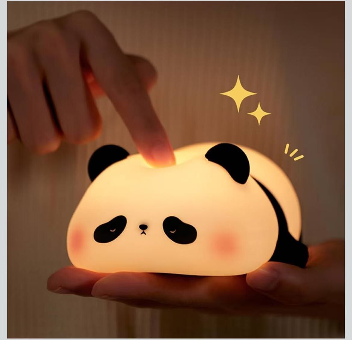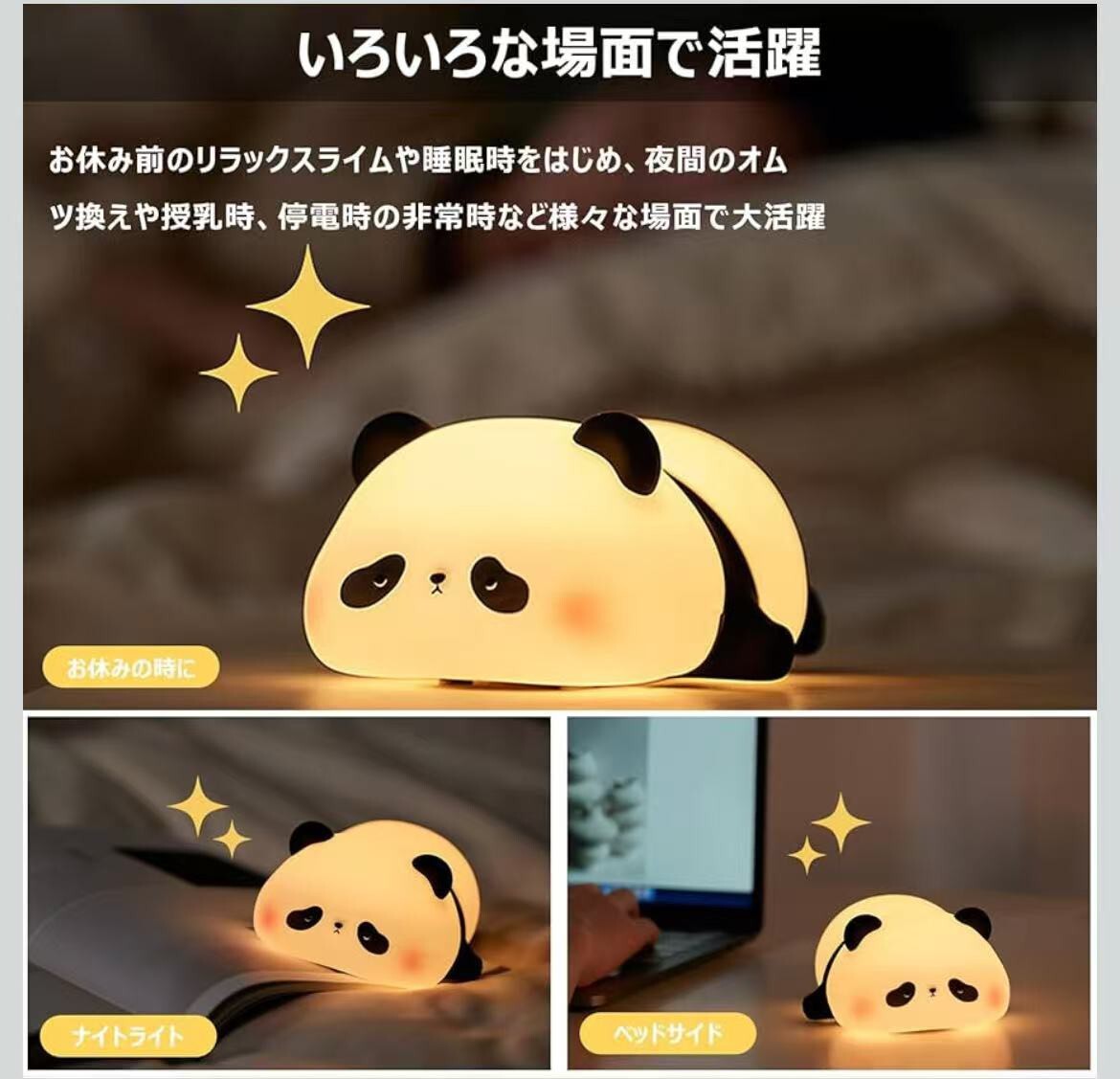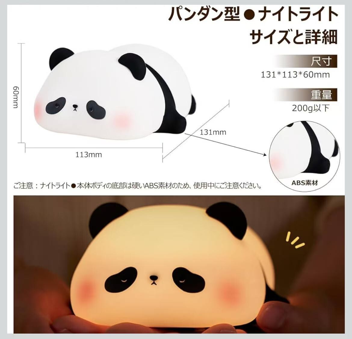 【かわいい-パンダ型ナイトライト】ふにゃふにゃとしたシリコン製になっているかわいい眠りパンダ型ナイトライト。かわいいキャラクターのデザインので親しみやすく、子どもや大人が安心感を得られるでしょう。