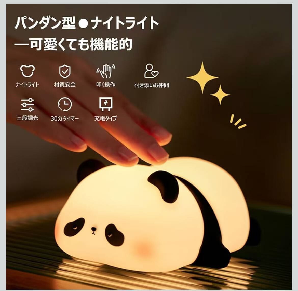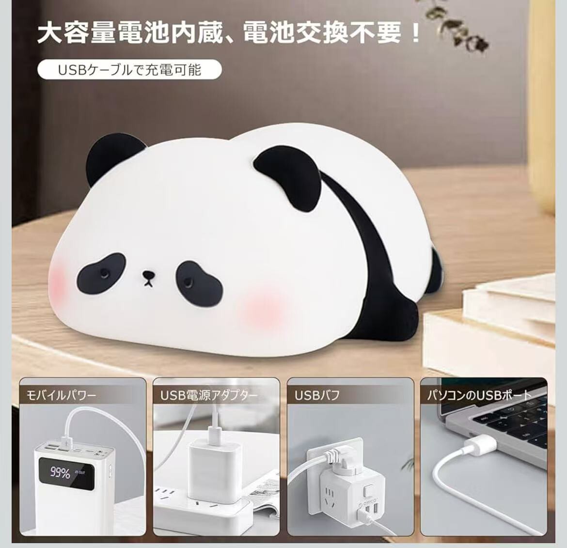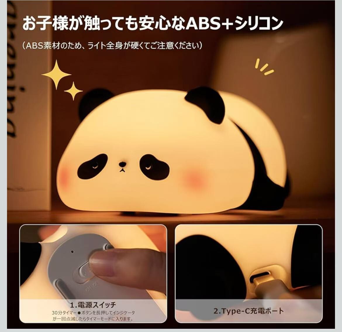 パンダ型 LEDナイトライト 充電式 調光機能 30分タイマー付き(授乳/寝室/雰囲気照明用)プニプニ柔軟素材 おしゃれでかわいい熊型デザイン 目に優しい常夜灯 ベッドサイドランプ テーブルライト 子供部屋 インテリア 出産祝い クリスマス 誕生日プレゼントに最適