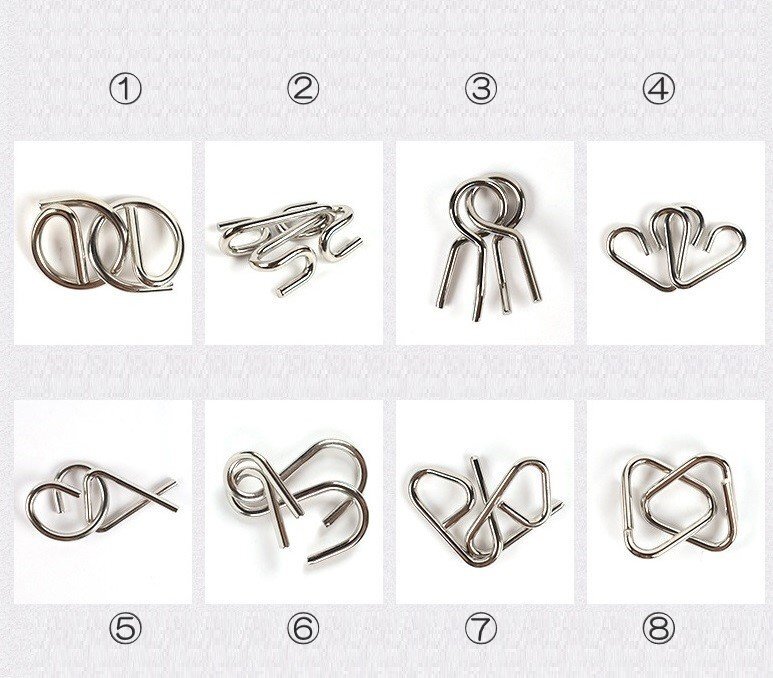 知恵の輪 8個セット ミステリーリング パズル チャイニーズリング 知育玩具 B