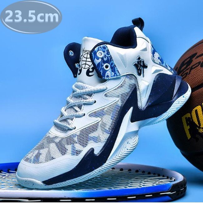 メンズ スニーカー ブルー 23.5cm 靴 シューズ 防滑 バスケットシューズ 通勤 通学 旅行 【241】