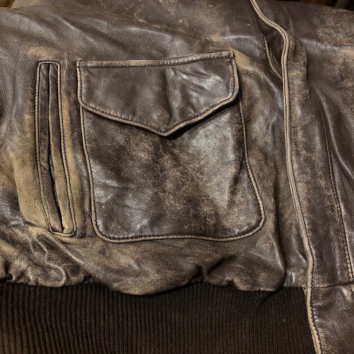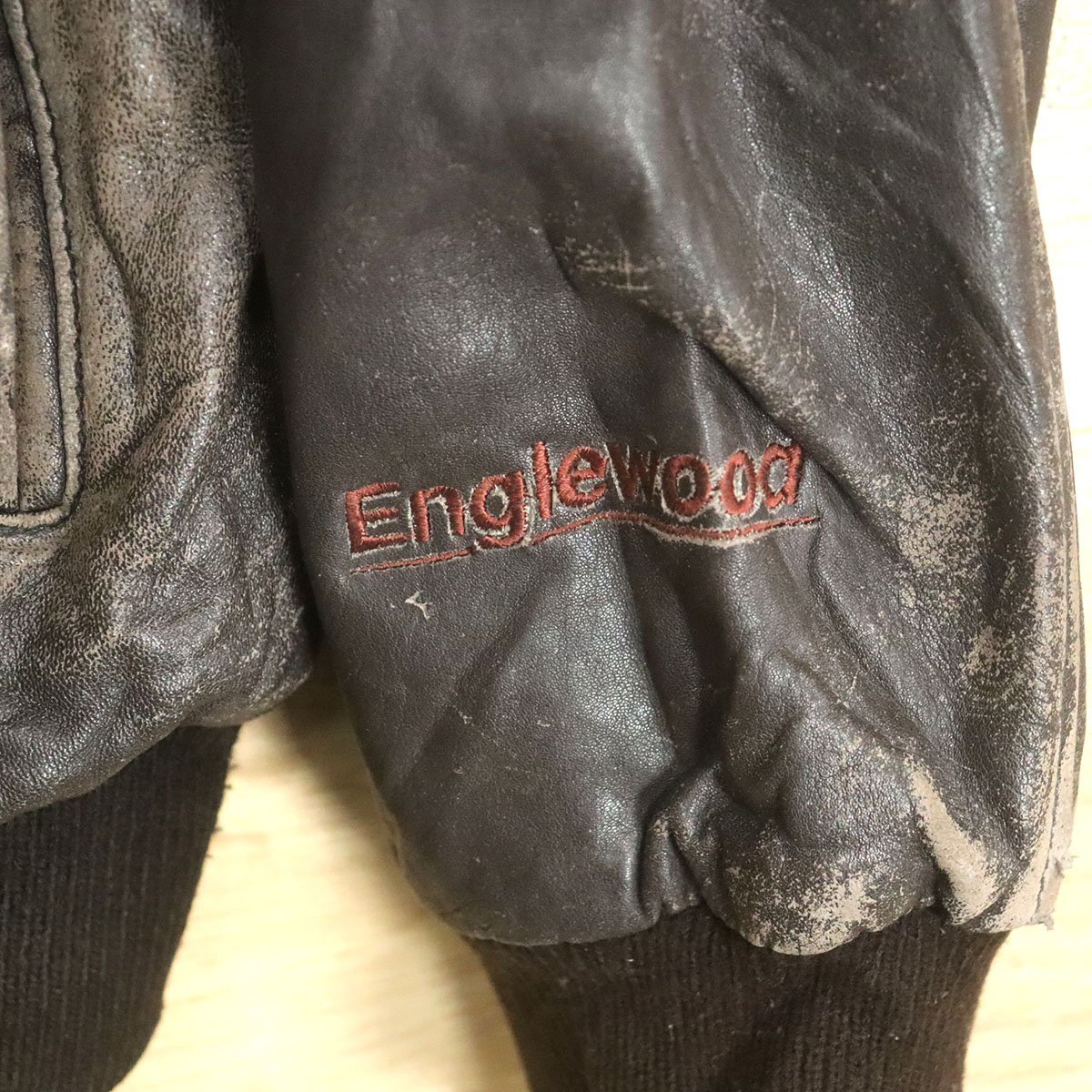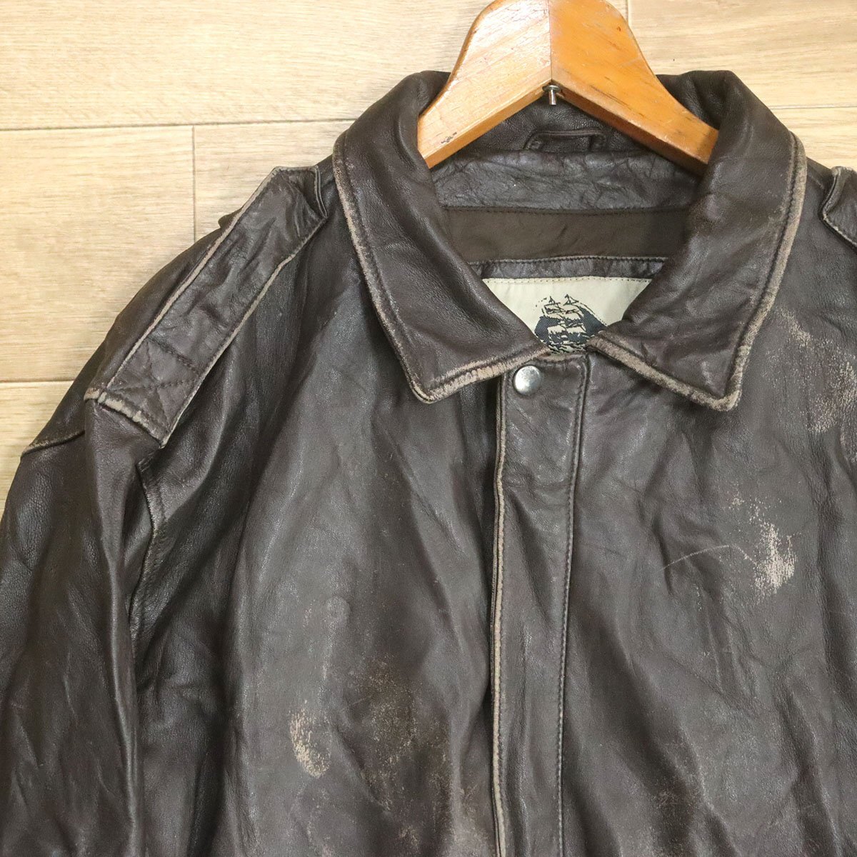 ?8K/S6.11-4 BURK'S BAY レザーフライトジャケット 本革 レザージャケット ボンバージャケット レザーブルゾン ブラウン L