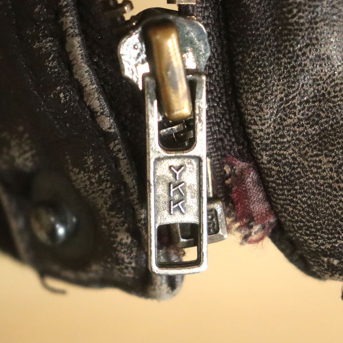 中古品です。使用感があります。全体的に経年による擦れや傷、腹部や各リブに汚れ、両袖リブにホツレがあります。