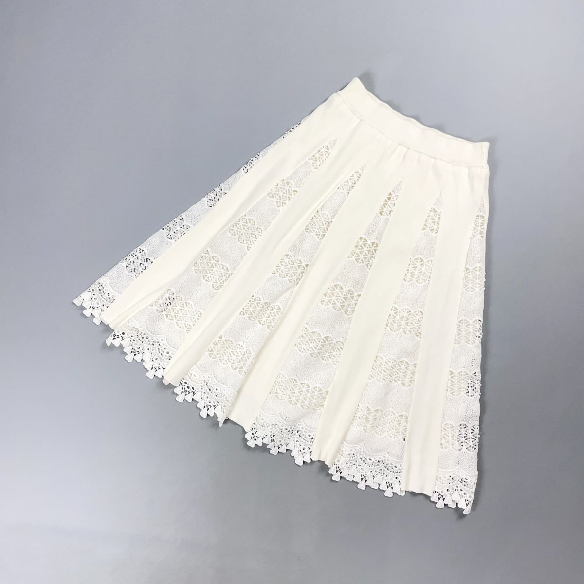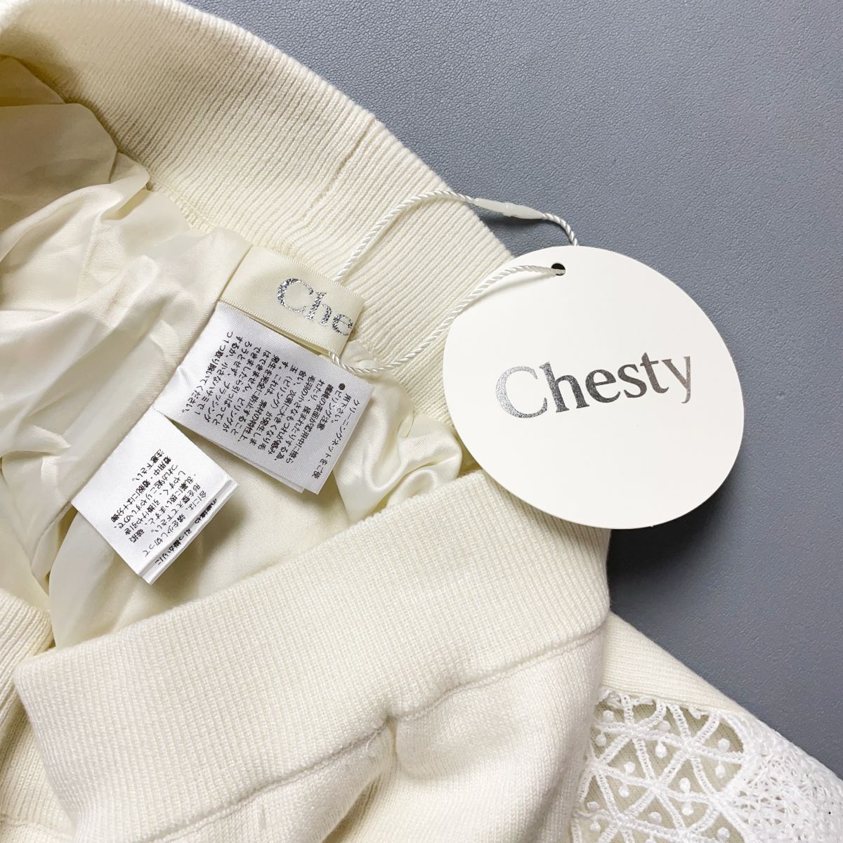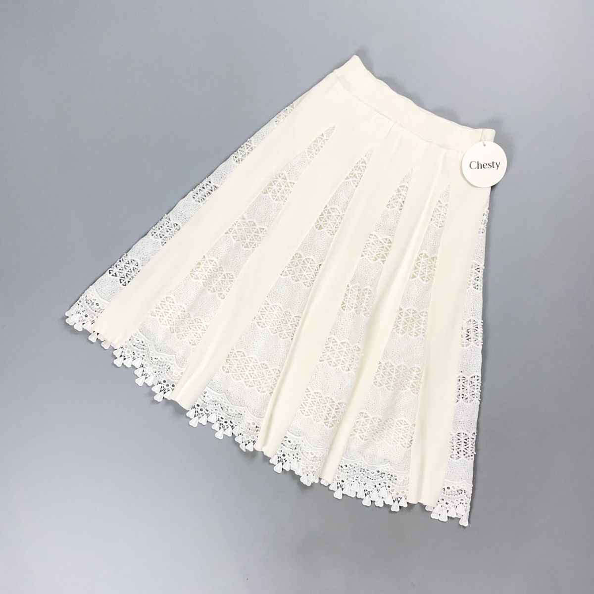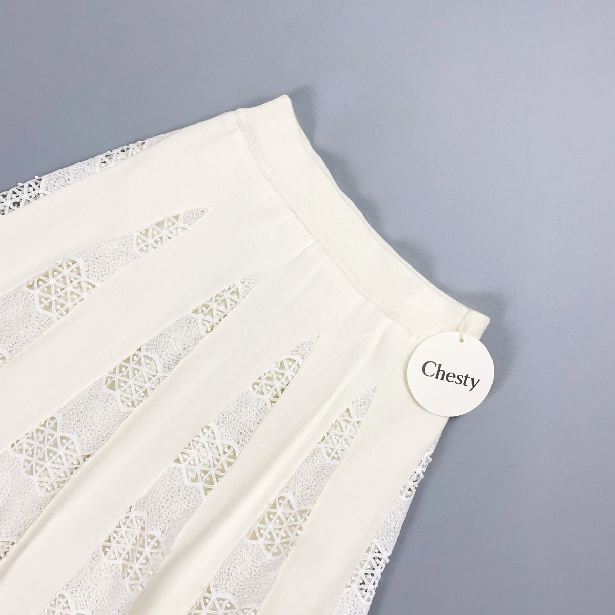 新品未使用タグ付 Chesty チェスティ ニットレースドッキングフレアスカート プリーツ レディース 白 ホワイト サイズ1*JD42