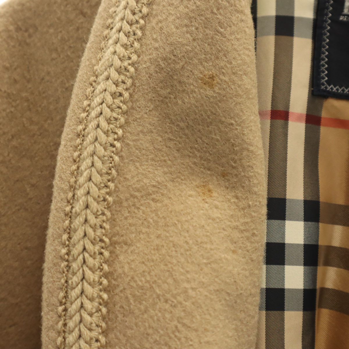 | 詳細 | 90年代のオールドのバーバリーになります。レディースかメンズのどちらか不明です。実寸を参考にお願いします。全体的に素材上の毛羽立ちと襟ぐりと右袖口に汚れがあります。破れ等の目立ったダメージはございませんが、古着にご理解の上ご購入をお願い致します。 |