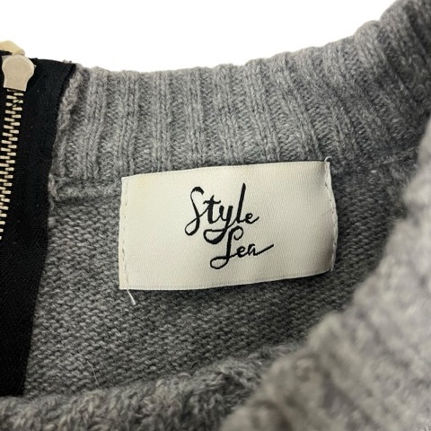 スタイルシー StyleSea ニット セーター チュニック 長袖 クルーネック 無地 ウール混 グレー アイボリー レディース