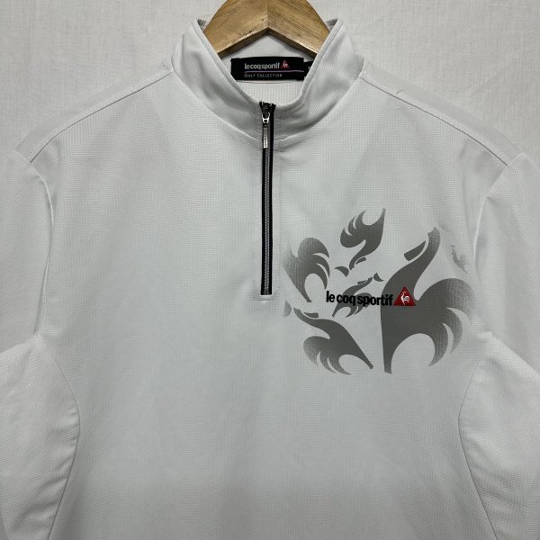 〇le cop sportif ルコック スポルティフ GOLF ゴルフ ショート スリーブ 半袖 ハーフ ジップ シャツ スポーツ ウェア M 白 ホワイト