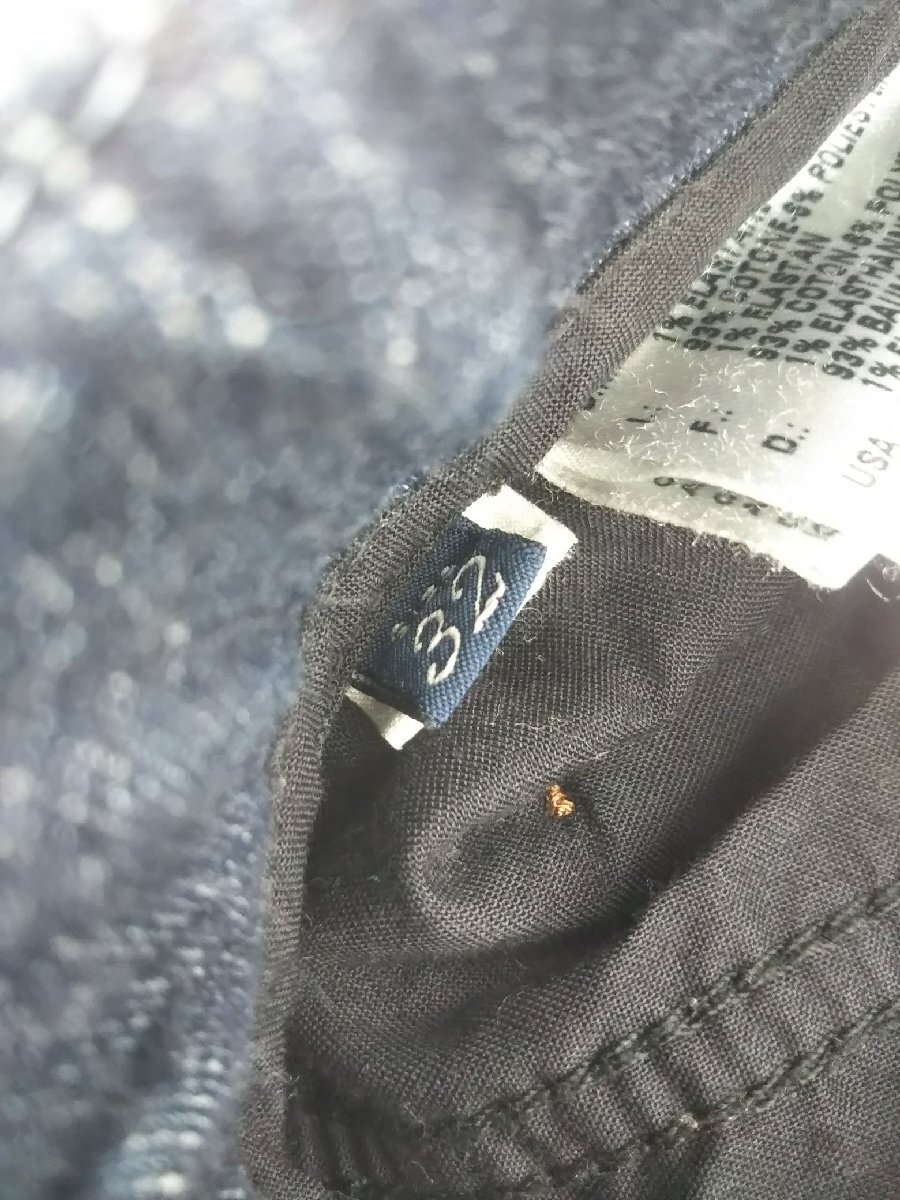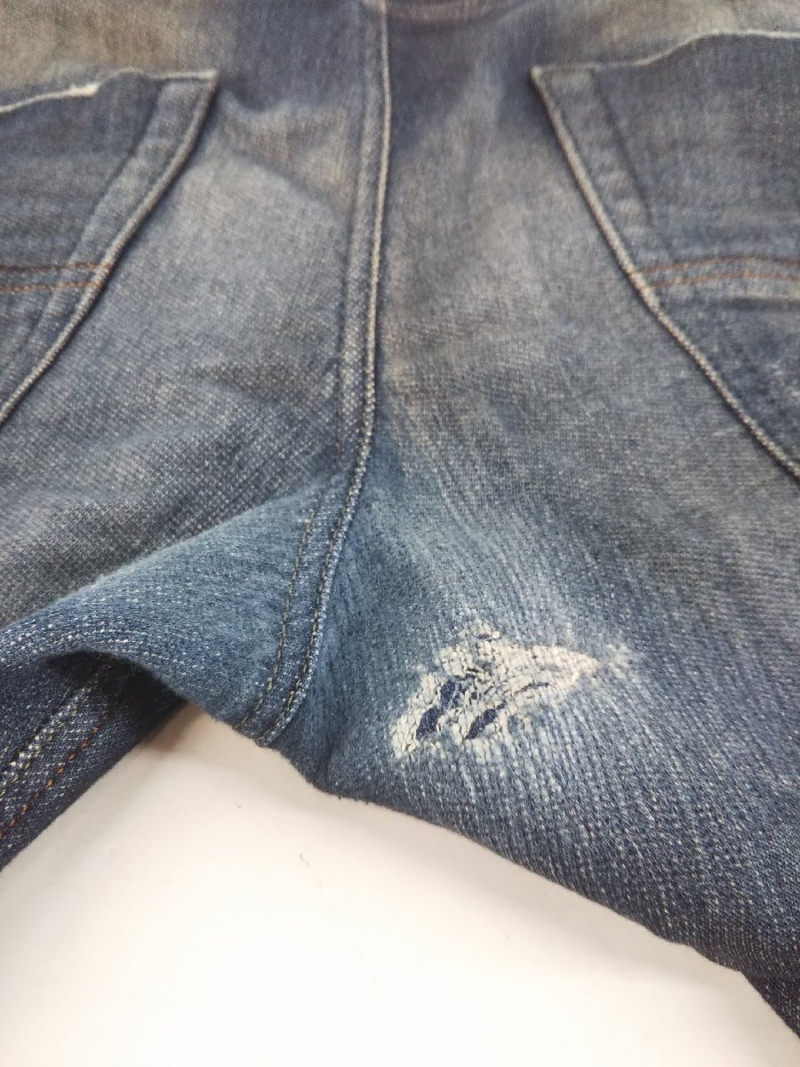 | ・中古商品になります。 ・シワ汚れ、シミ、色あせ、着用感有。 ・ダメージ加工有。 ・デニム地ではなく綿93%のデニム風。 ・サイズ表記:32 ・【実寸】ウエスト平置き:約42cm/股上:約29cm/股下:約80cm/ワタリ:約31cm/裾幅:約17cm※素人採寸の為、多少の誤差有。 | |||||||||