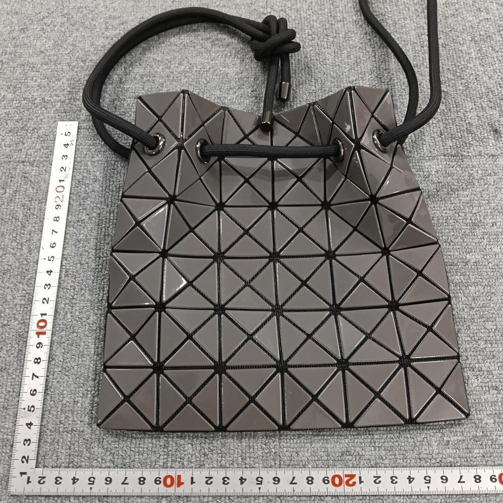 状態備考 : BAOBAOのグレー幾何学模様巾着バッグ。目立つ傷汚れなく状態良好です。モダンなデザインは、カジュアルにもきれいめにも映え、様々なシーンで活躍します。