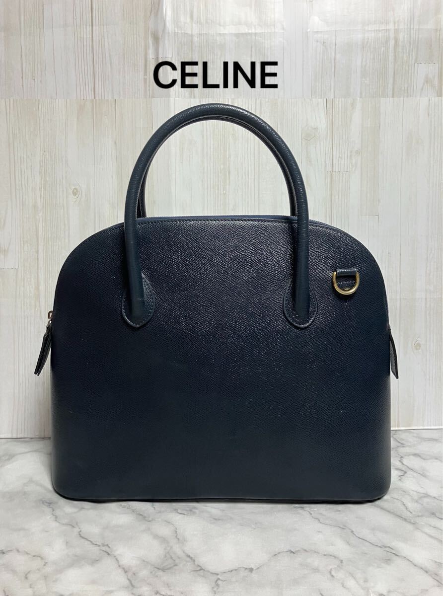 CELINE セリーヌ ヴィンテージ ボリード ネイビー レザー 大容量 ハンドバッグ フォーマルになります。