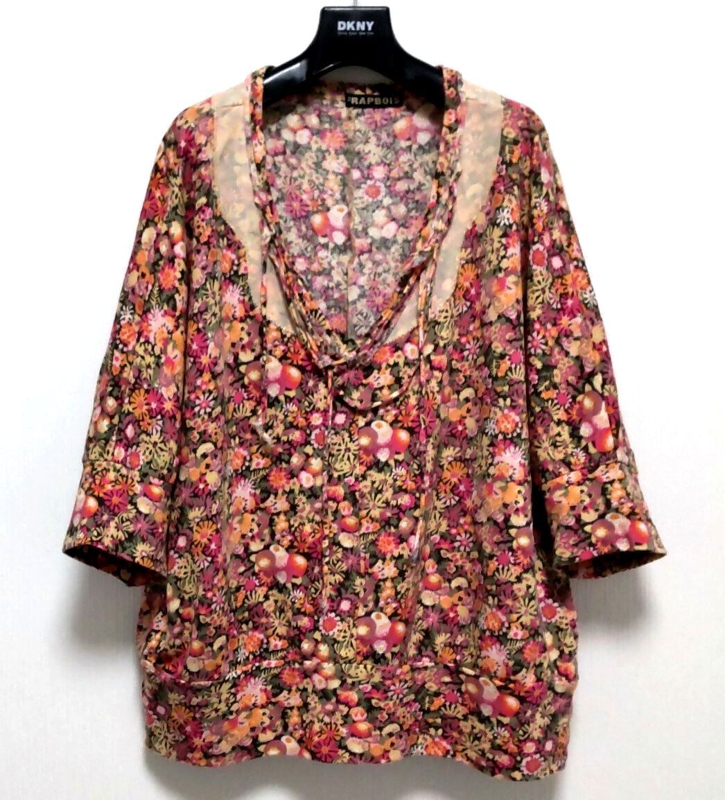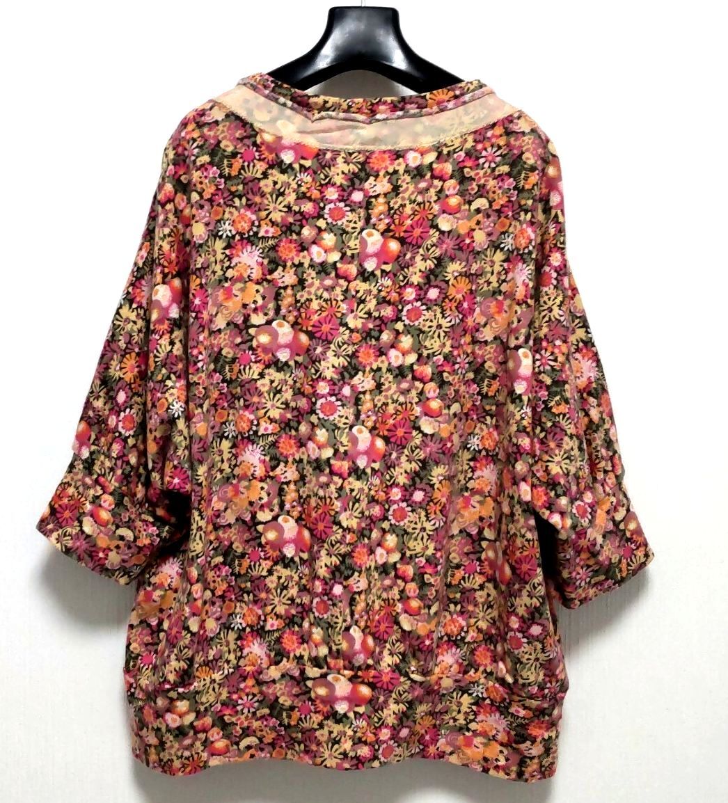 胸元のデザインとボタニカル総柄が印象的なカットソーです。