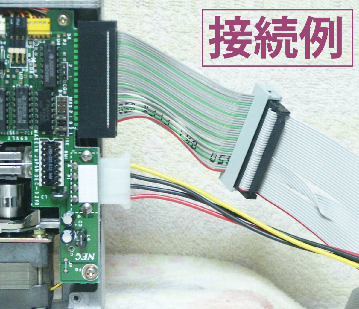 ・IDC 2.54mm/Pitch Flat Cable ・IDC Box header 34P(Relay) - CE-34P(Straight connection) (Drive select (DS) depends on the connector position of the cable connected to the relay connector. DS1 when in front of the torsion. It is DS0 when it is beyond the torsional part. On PC/AT compatible machines, the drive selection is determined by the cable, and the switching of the DS uses the BIOS setting item "FDD SWAP".) | |||||||||||||||||||||||||||