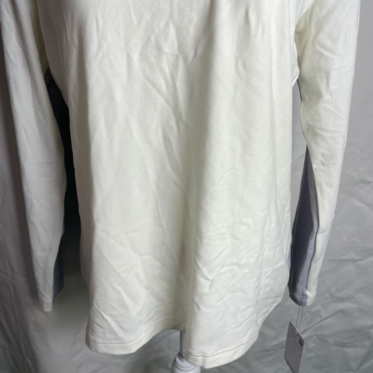 シンプルなホワイトをベースに、脇とポケット部分のグレーカラーがアクセントになった上品なデザイン。