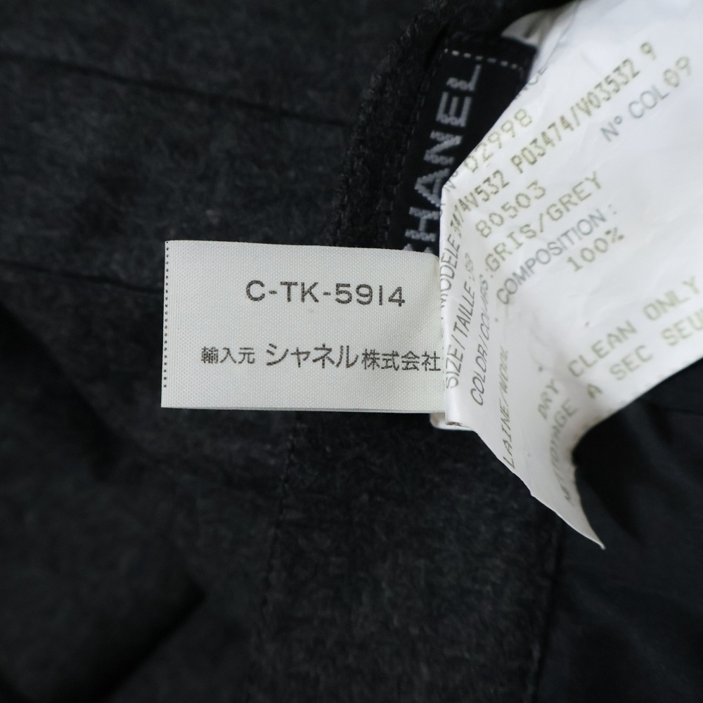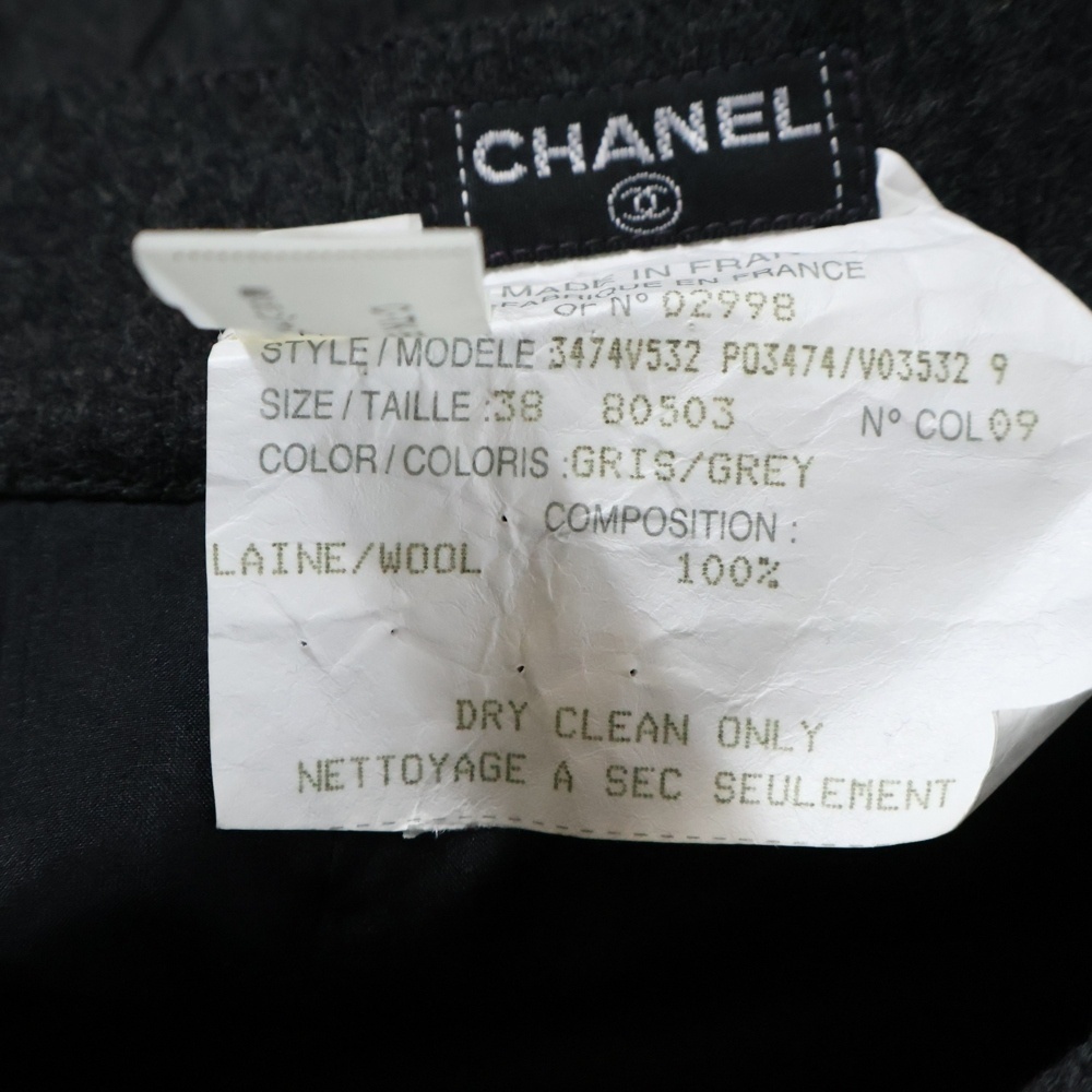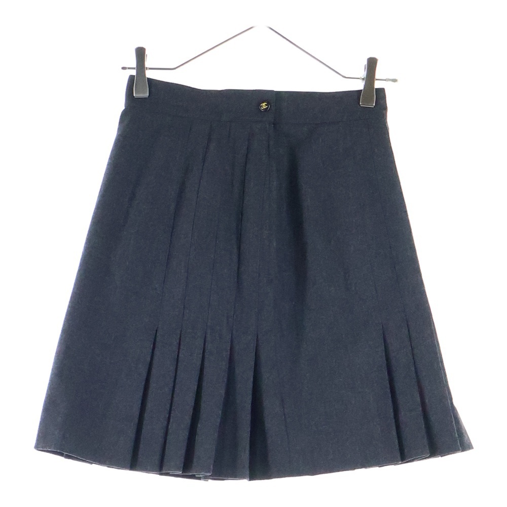 CHANEL シャネル ココマークボタン ウール プリーツ ミニスカート グレー レディース P03474V03532