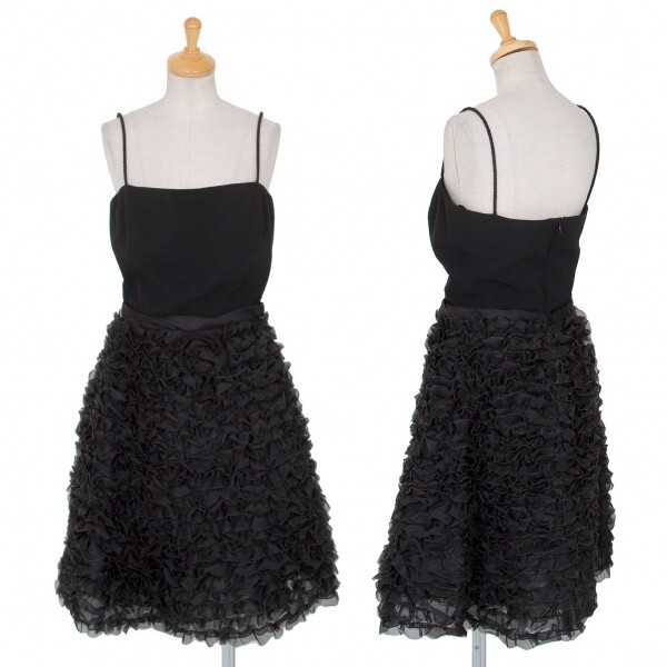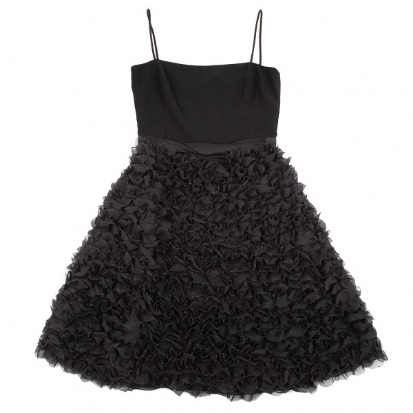 | エンポリオ アルマーニEMPORIO ARMANI チュールフリルスカートシルクキャミワンピース 黒40 |