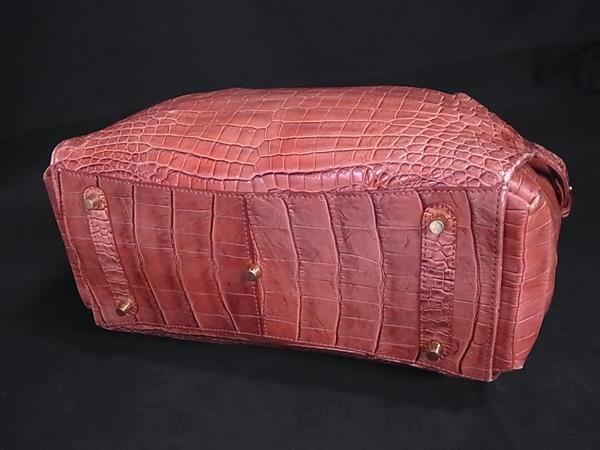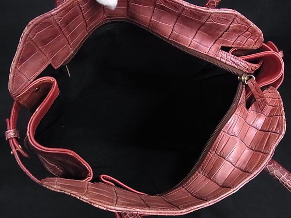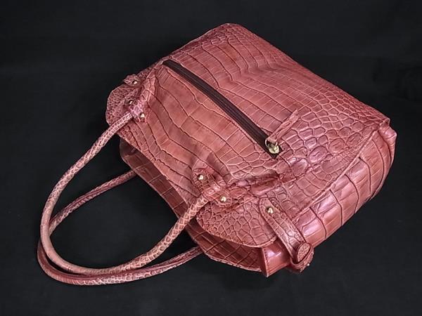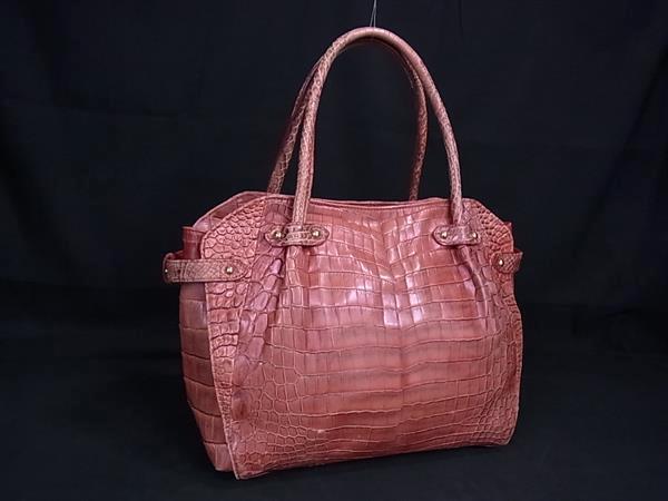 1円 ■極上■本物■ クロコダイル ハンドバッグ トートバッグ 肩掛け レディース ピンクブラウン系 BM9997