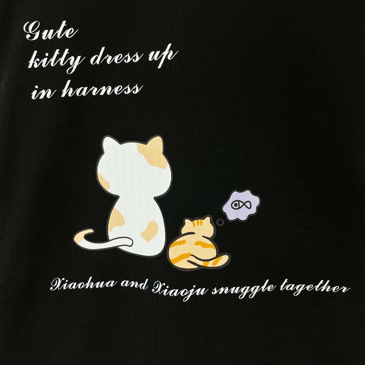 ベーシックな丸首デザインで着脱しやすく、普段使いにぴったり。フロントには気品あふれるネコのプリントをあしらい、シックで個性的な雰囲気を演出。さらに英字柄を組み合わせることで、ファッション性もぐっとアップしています。