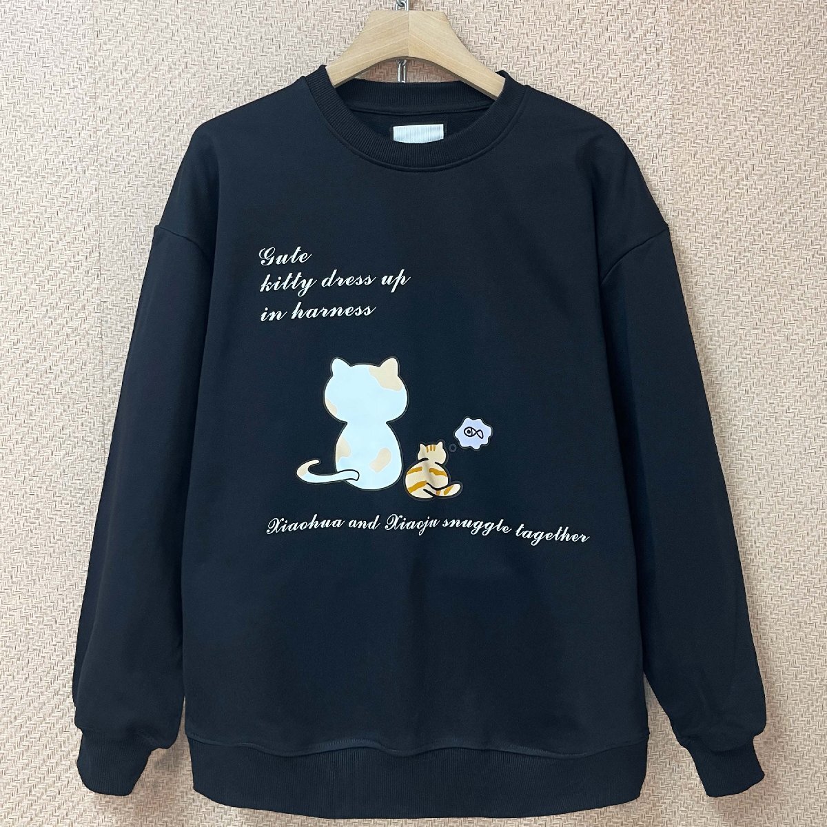 個性ヨーロッパ製※定価4万◆ブルガリア発※RISELIN トレーナー 綿100% 通気 吸汗 柔らかい 猫柄 遊び心 カットソー スウェット 男女兼用 XL/50サイズ