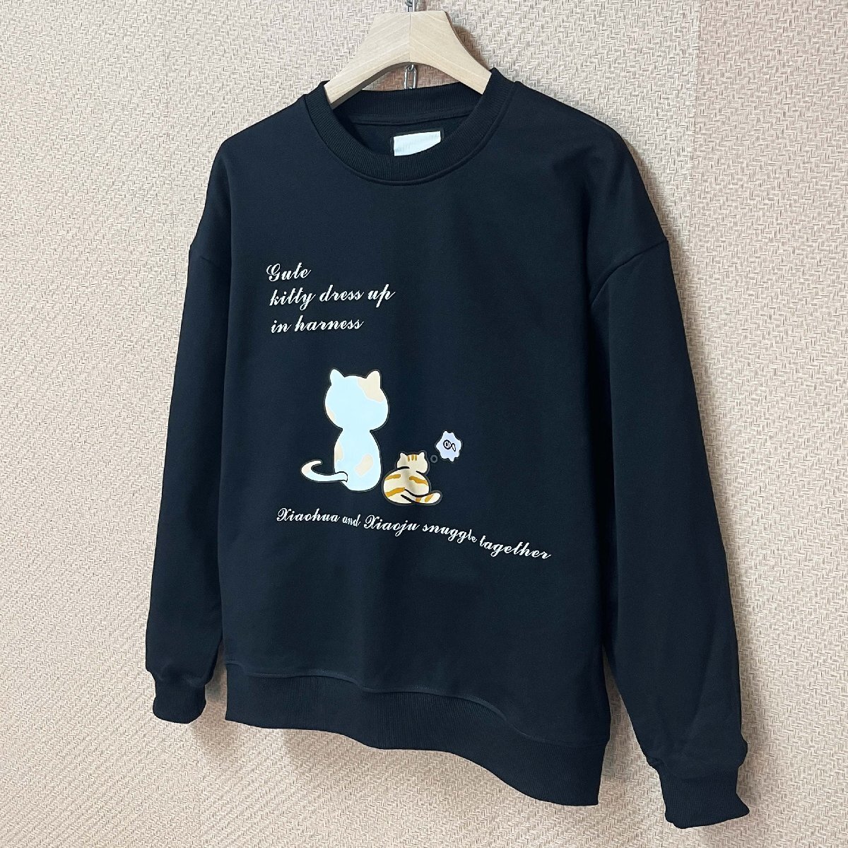 個性ヨーロッパ製※定価4万◆ブルガリア発※RISELIN トレーナー 綿100% 吸汗 柔らかい 猫柄 遊び心 カットソー スウェット 男女兼用 XL