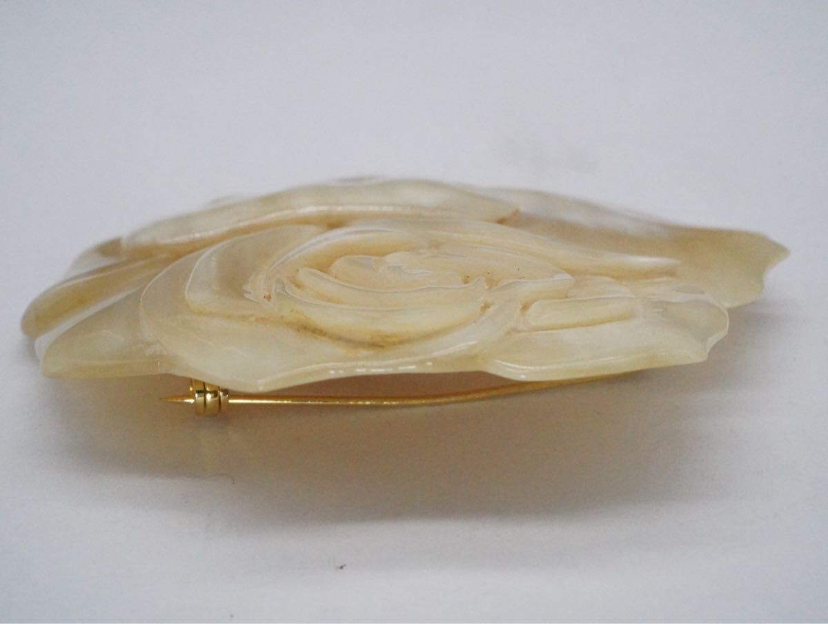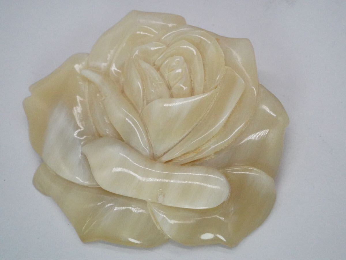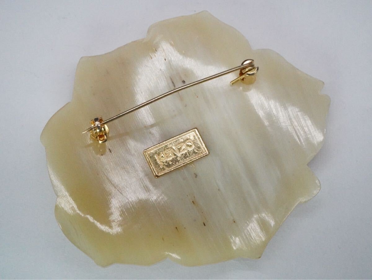 【199】KENZO ケンゾー 花 彫刻 バッファローホーン 水牛 ブローチ アクセサリー TIA