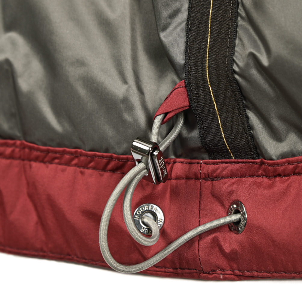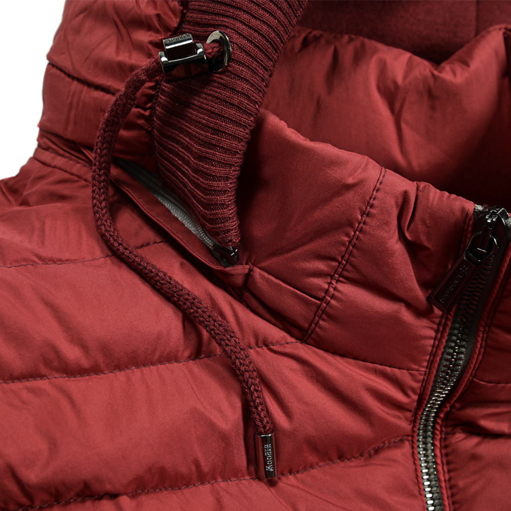 | 表地: ポリアミド 95% ポリウレタン 5% 裏地: ポリアミド 100% ニットリブ: ウール 60% シルク 30% カシミヤ 10% 詰物: シベリア天然ダウン | |