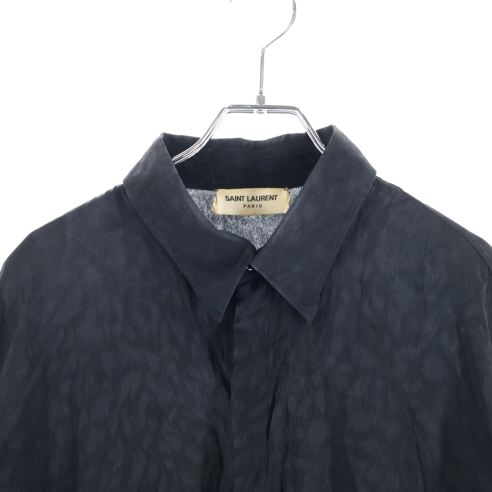 SAINT LAURENT PARIS サンローランパリ 22SS レオパード総柄 シルク ロングスリーブ 長袖シャツ ブラック 705698