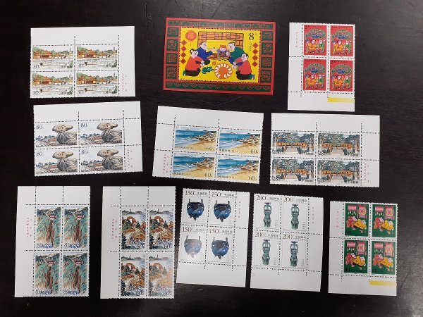 1103Y01 中国切手 T切手 J切手他 ブロック 小型シート等 まとめ *一部外国切手混入 *写真、下にも掲載・詳細は写真参照