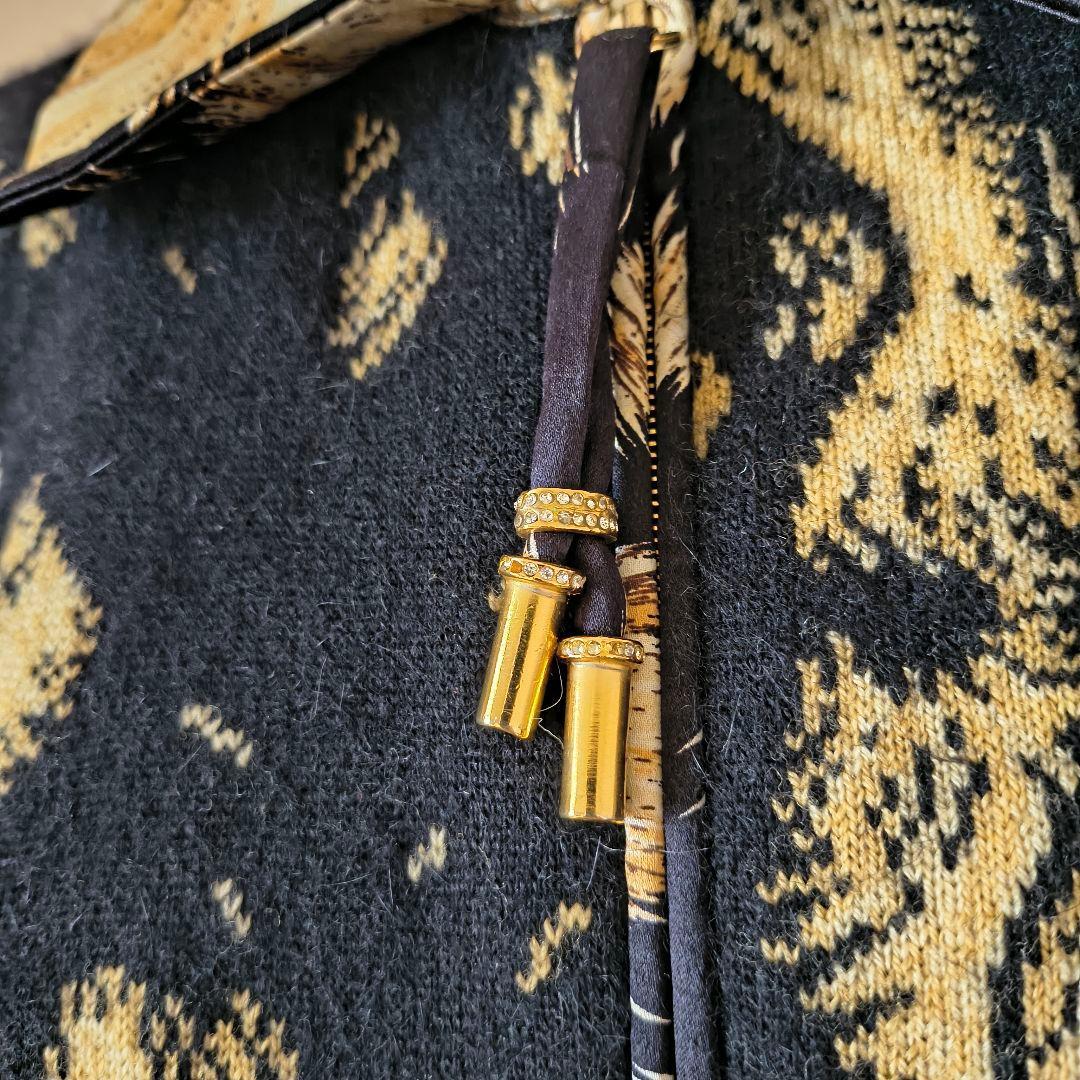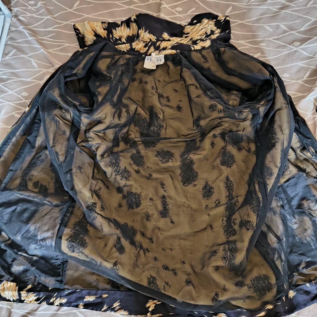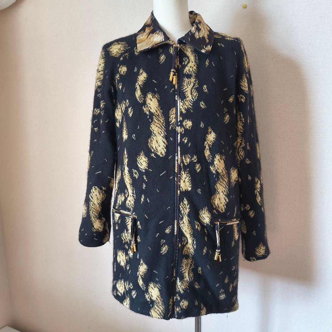 黒と金のアニマル模様が特徴的なジッパー付きアウター。