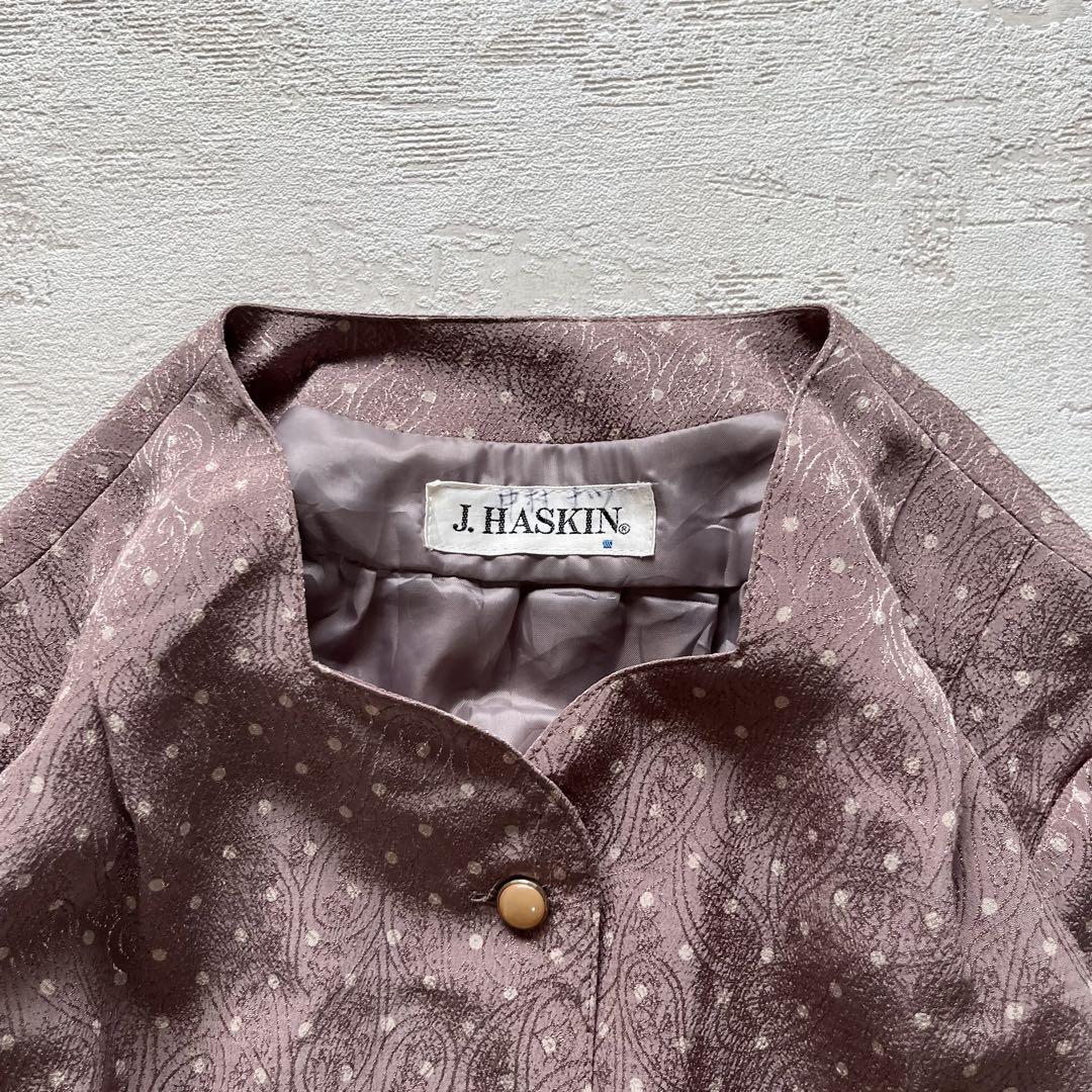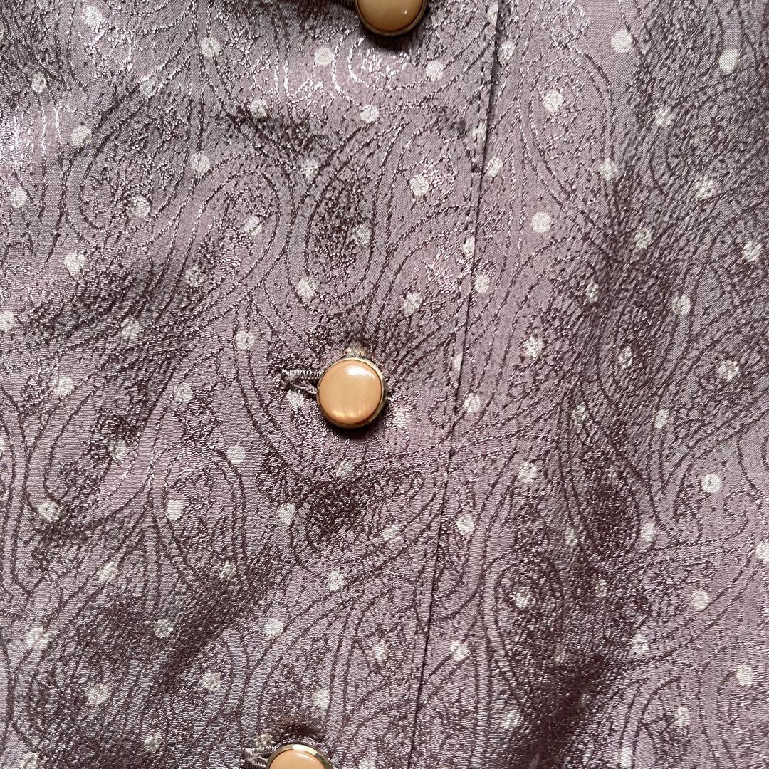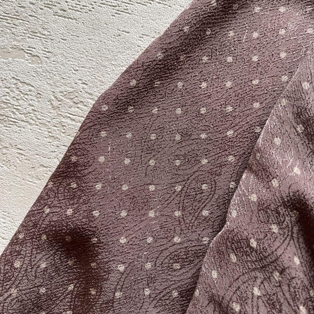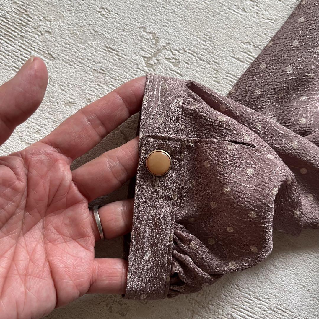 落ち着いたモーブピンクに小さなドットが散りばめられた、上品なレトロワンピース。