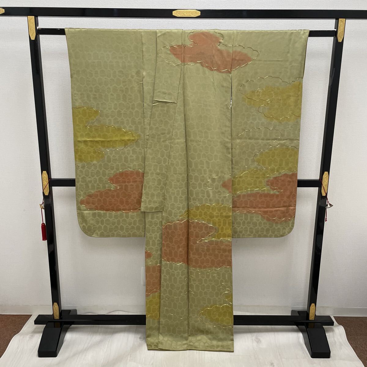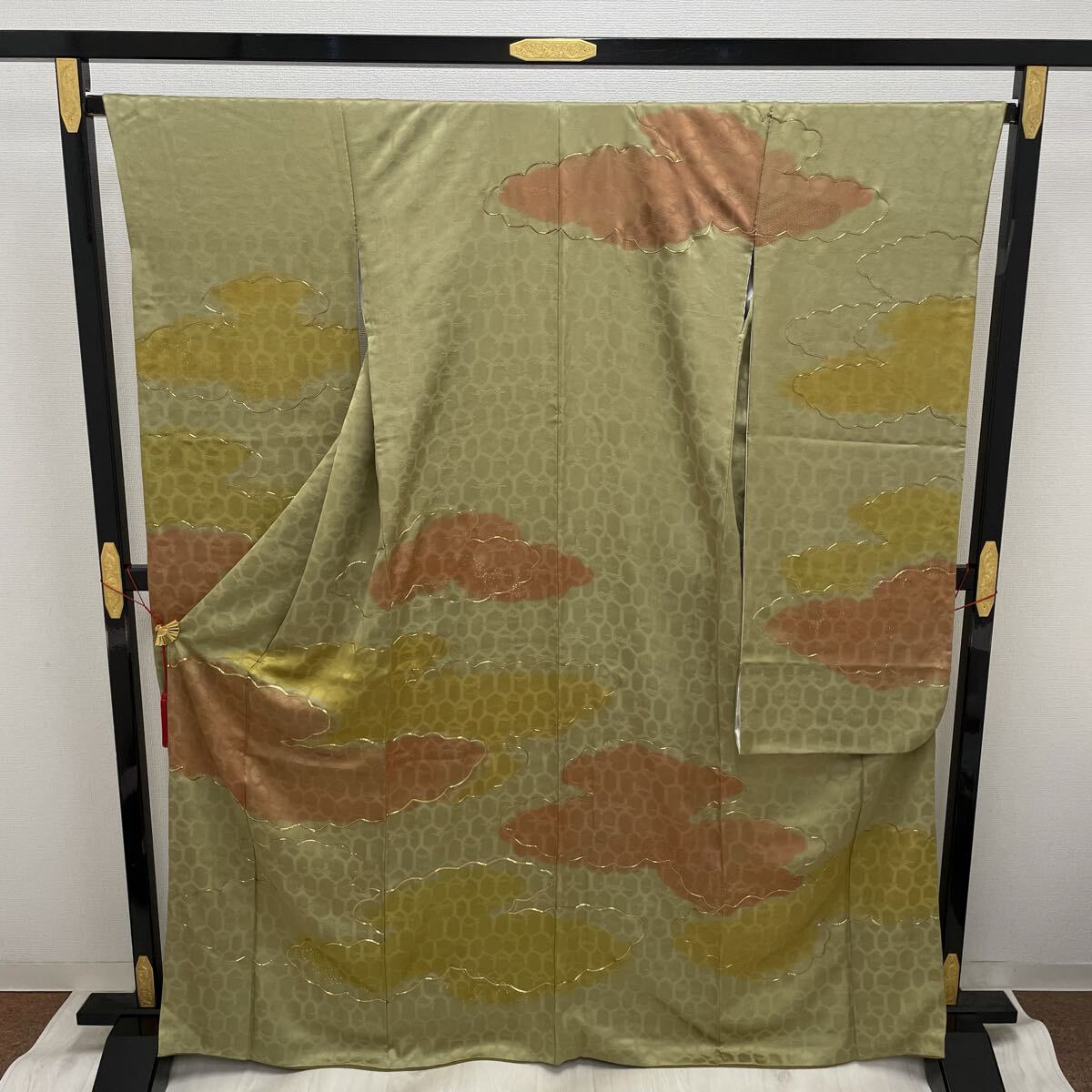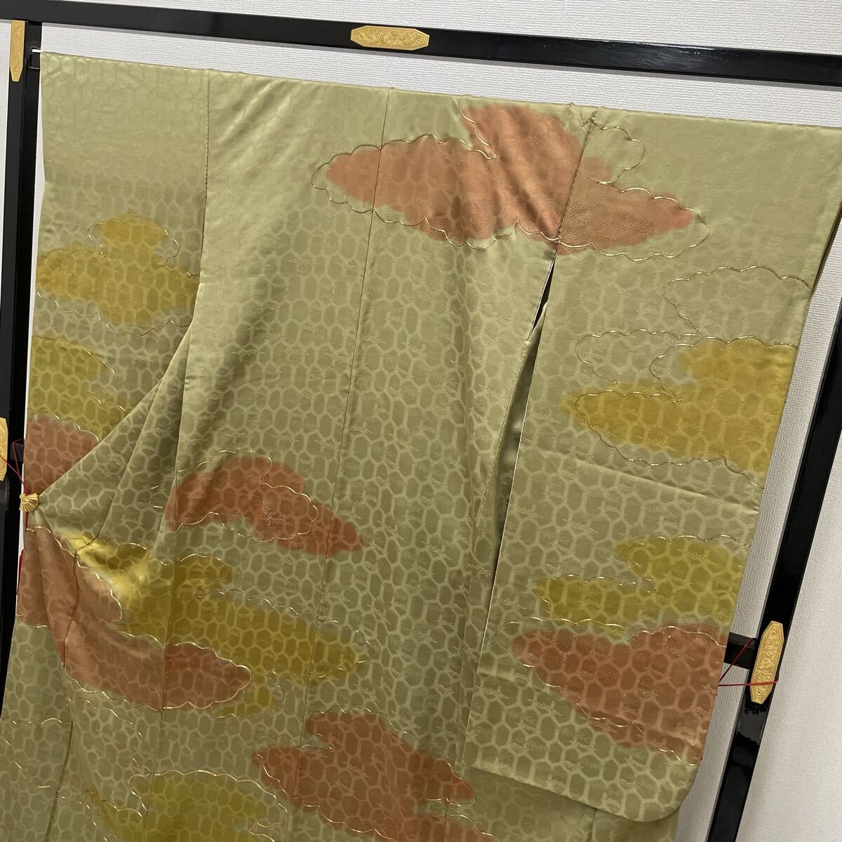 振袖 裄66 雲取りに金駒刺繍 亀甲模様 着物 正絹 W-6686