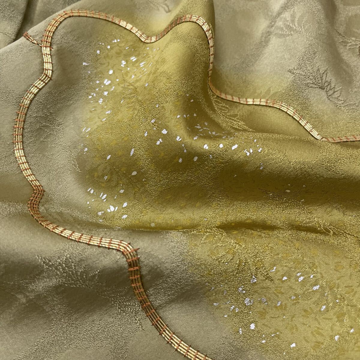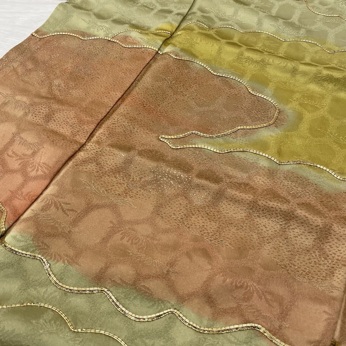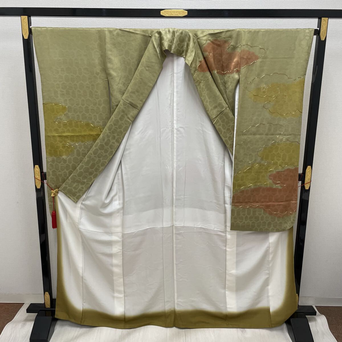 振袖 裄66 雲取りに金駒刺繍 亀甲模様 着物 正絹 W-6686