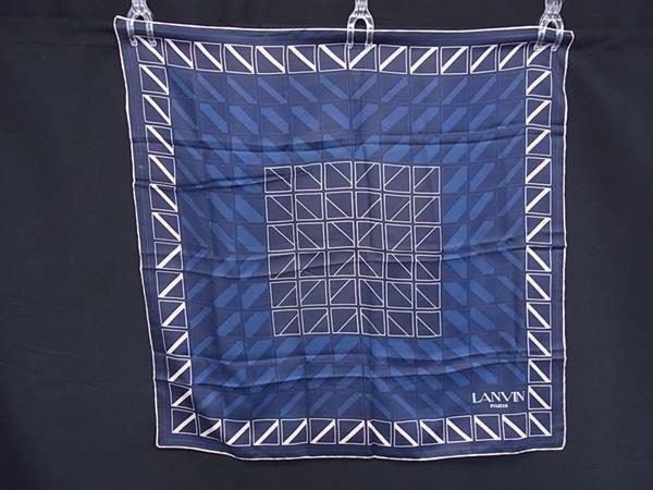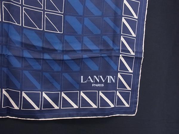 ■美品■ LANVIN ランバン 大判 スカーフ ストール ショール レディース ネイビー系×マルチカラー DJ8525