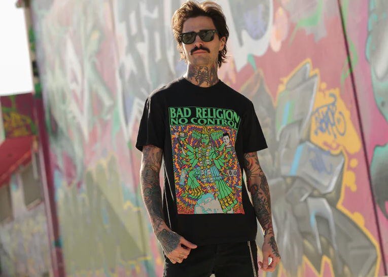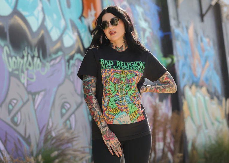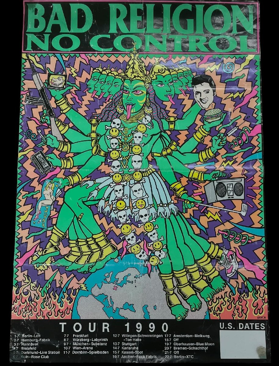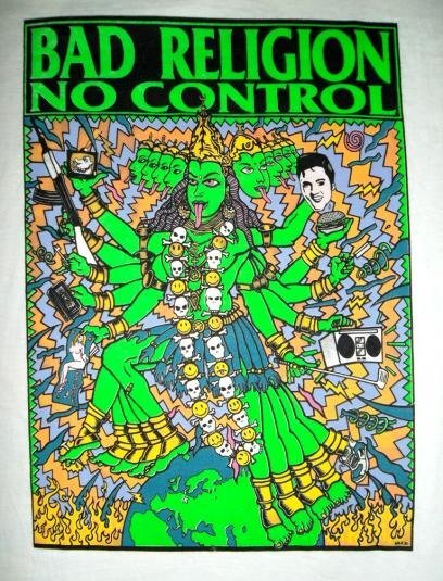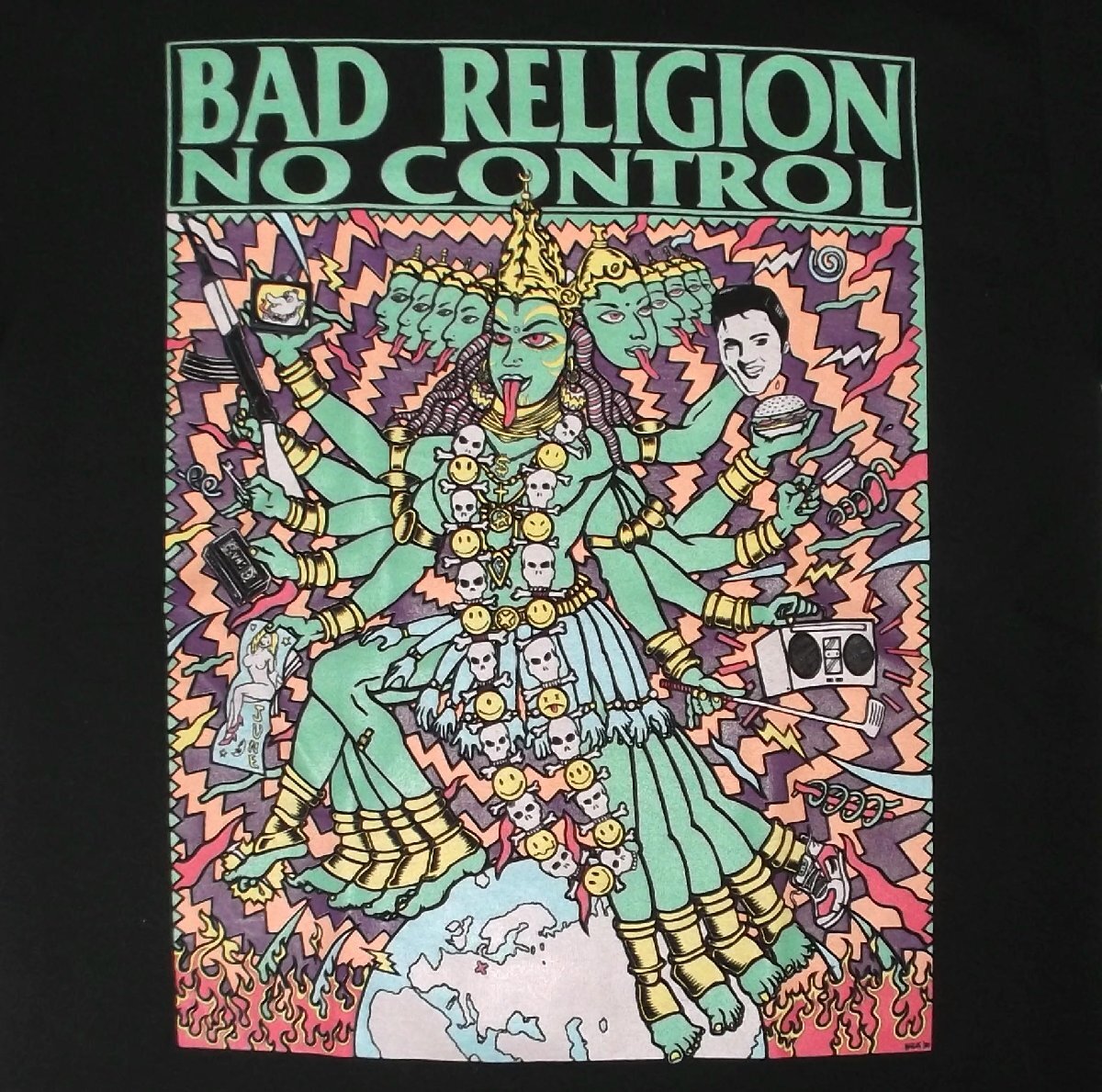| BAD RELIGION -No Control Kozik - 正規品 This No Control design from renowned artist, Frank Kozik is printed on a standard-fitting black Comfort Colors t-shirt. • Screen Print • 100% Cotton • Standard Fit, Premium Quality T-Shirt • Machine wash cool, tumble dry low 1979年に結成されたパンク・ロックバンド「バッド・レリジョン」のTシャツ「Bad Religion - No Control Kozik」です。 「Epitaph」の創始者でもあり、ペニーワイズをはじめオフスプリングやNOFXなど、 西海岸のパンク系バンド,シーンに与えた影響は計り知れず、現在も多くのフォロワーを生み出し続けています。 1989年にエピタフよりリリースした4枚目のアルバム『No Control』のジャケットとしてコジックが描き下ろしたアートワークであり、1990年のツアー時に採用されたデザインです。 新品・正規品 Sサイズ 細身の170cm前後の方によいかと思われます。肩幅44cm、着丈70cm、身幅45cm 郵メール便送料¥250(代引き不可・紛失補償なし) ACE CAFE LONDON、LUCKY13、MOONEYES、Sailor Jerry等~アメキャラ・企業ロゴ等ライセンスTシャツ、RATFINK関連品、バンドTシャツ等取り扱っております。 ** 他にも色々出品中です。 CWBT cwktw cwlpm IWTS | |||||||