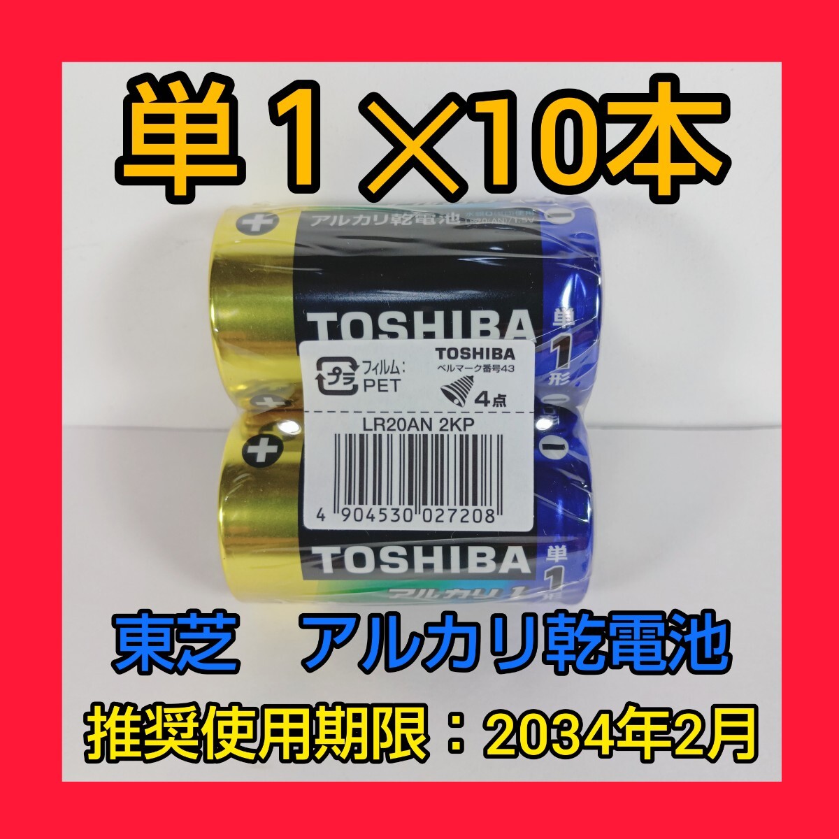 【東芝 TOSHIBA LR20AN 2KP 単1 アルカリ乾電池 2パック5セット 計10個】