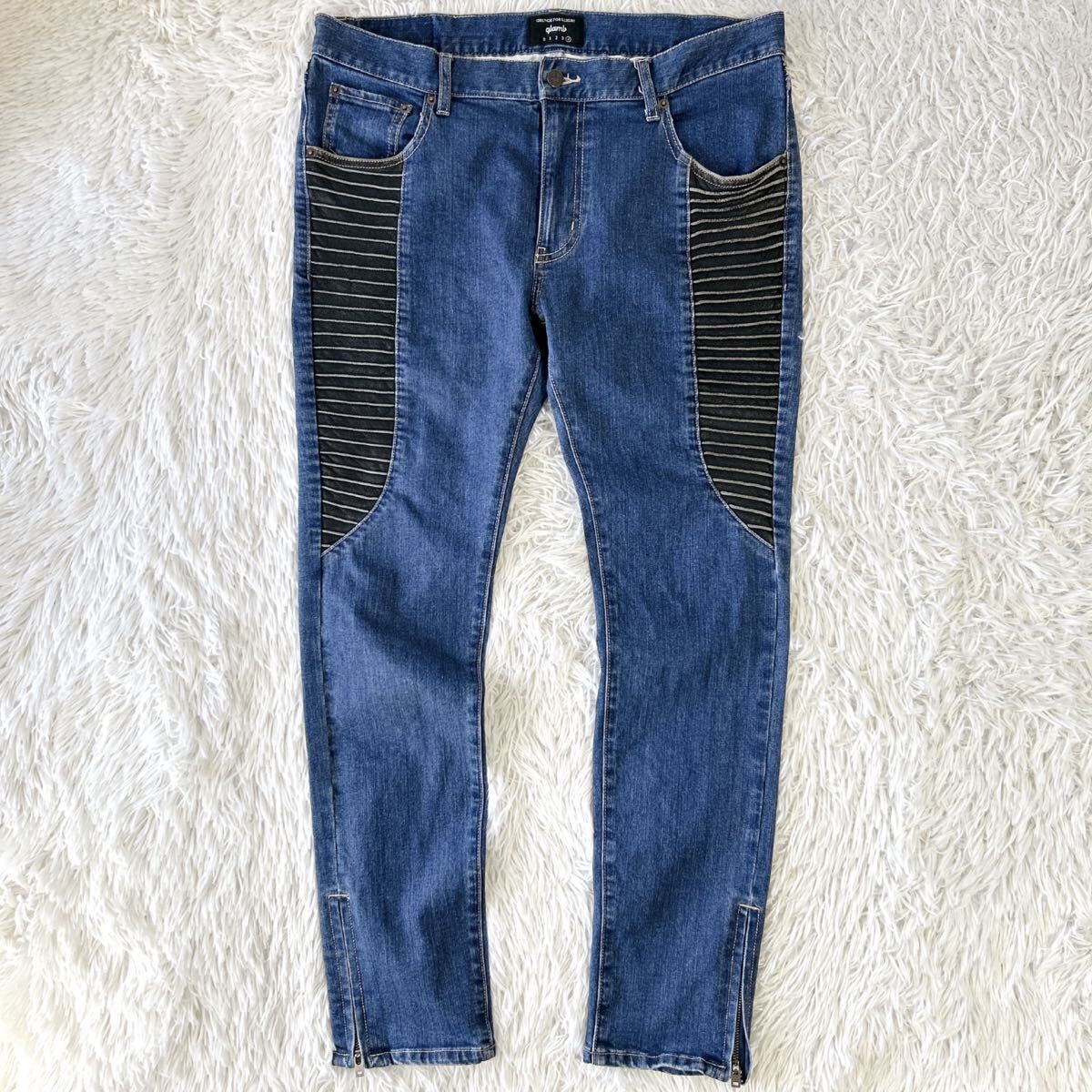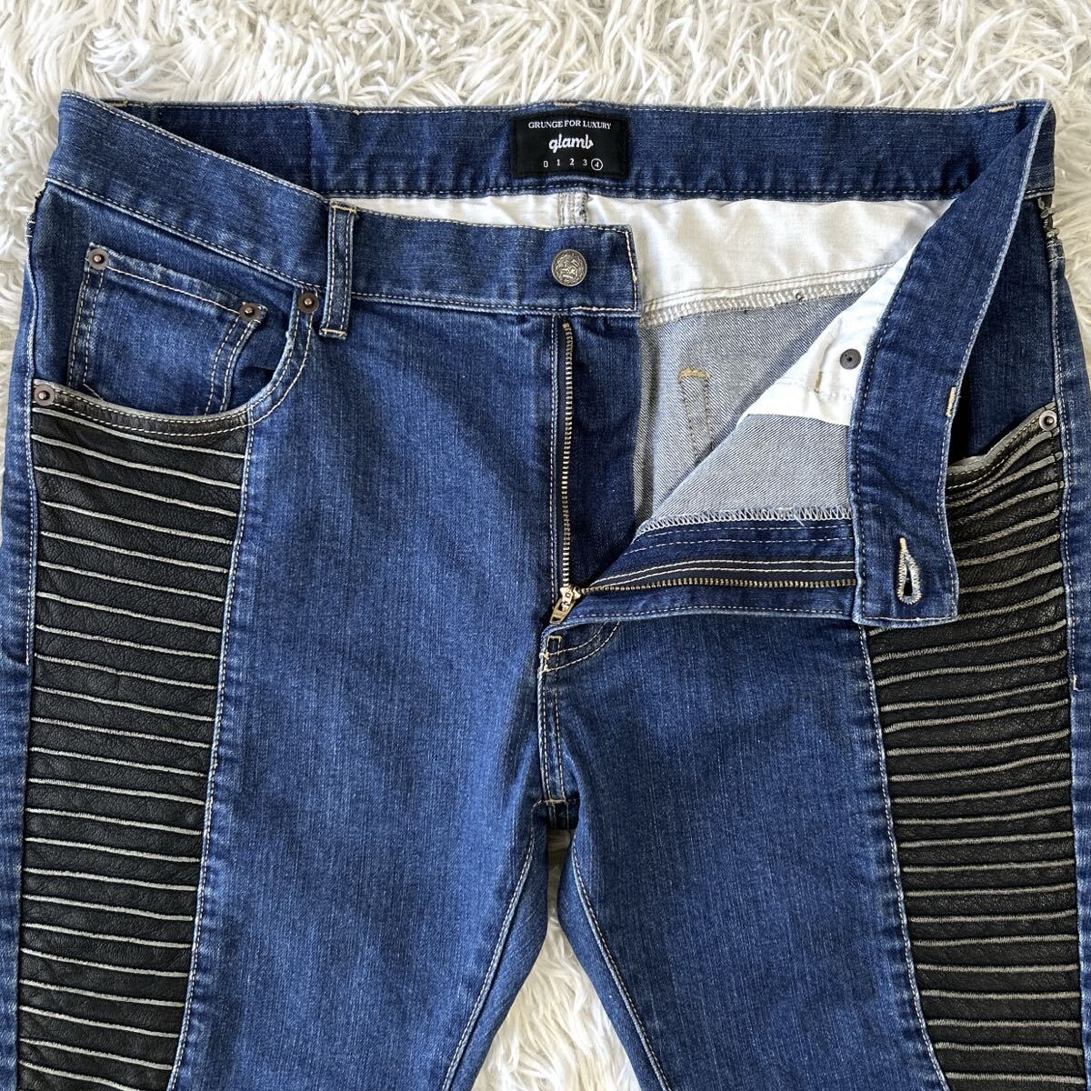 glamb グラム Hugo skinny denim ヒューゴ ストレッチ スキニーデニムパンツ バイカーデニム 羊革 レザー蛇腹 裾ジップ インディゴ 4