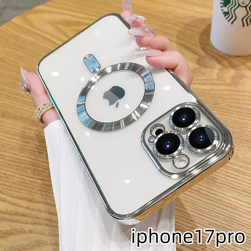 iphone17proケース TPU ケース 耐衝撃 無線 磁気 ワイヤレス充電 シルバー2