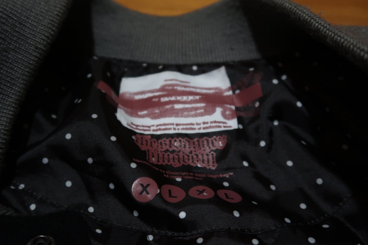 スワッガー 袖レザー スタジャン XLサイズです、肩幅約55cm 着丈約77cm 身幅約67cm 袖丈約63cmです、使用感があります、発送は宅急便の送料元払いのみになります。