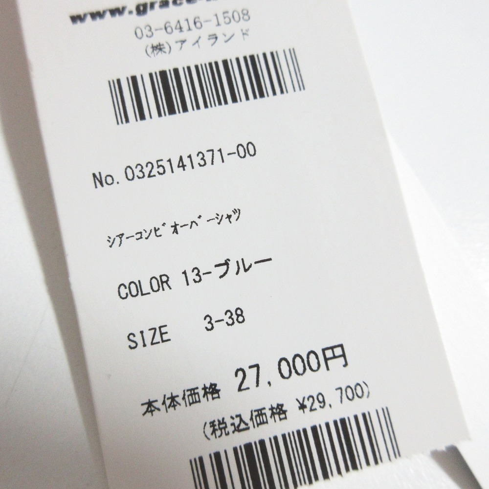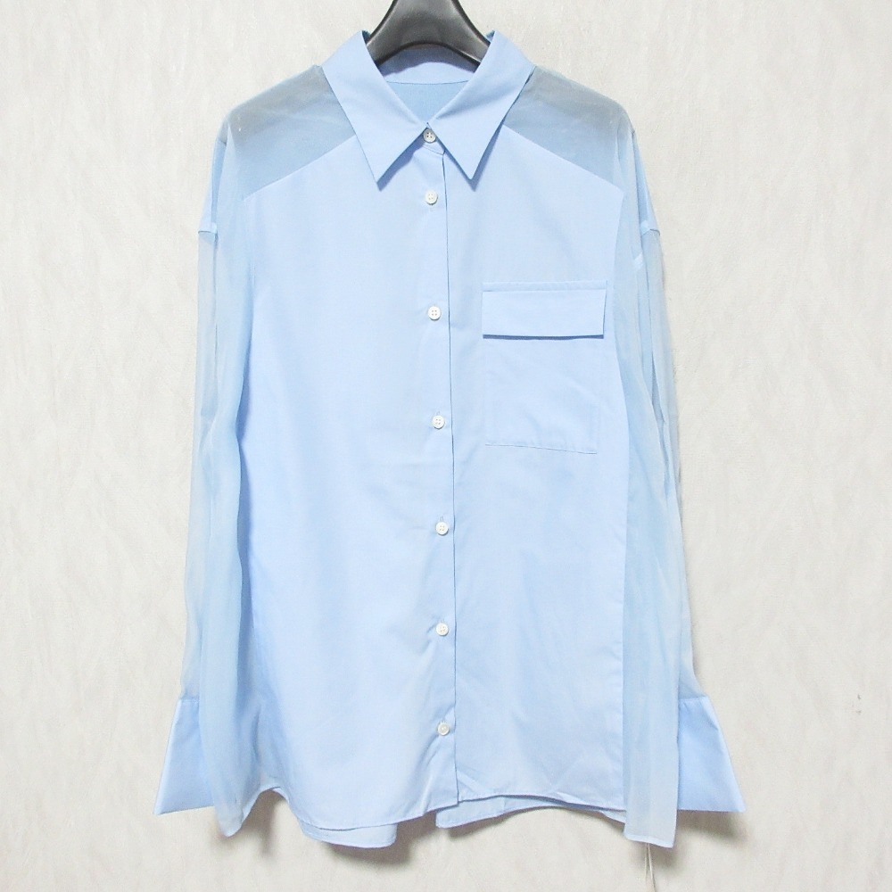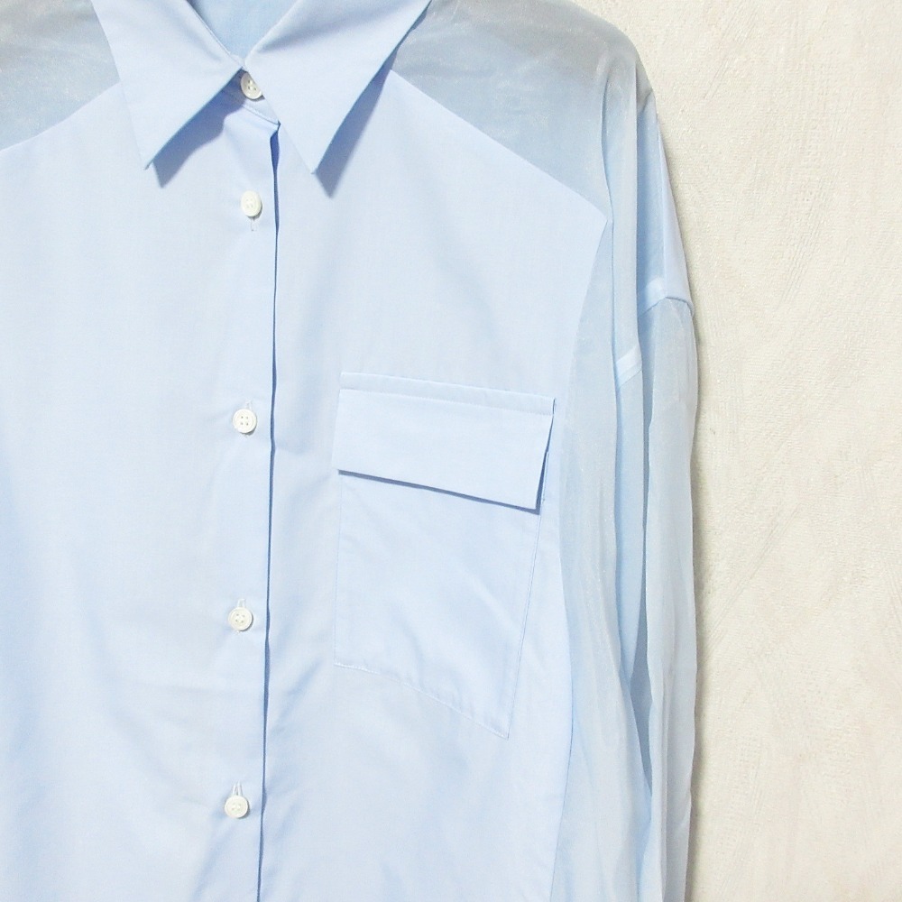 未使用 25SS Diagram ダイアグラム グレースコンチネンタル シアーコンビオーバーシャツ 0325141371 サイズ38 ブルー
