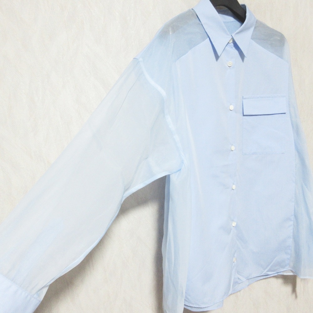 商品名:25SS Diagram ダイアグラム グレースコンチネンタル シアーコンビオーバーシャツ 0325141371 サイズ38 ブルー