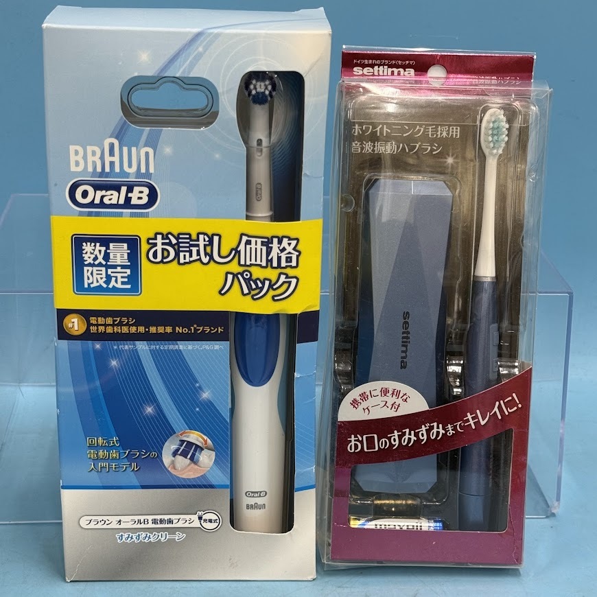 【A53-11】 電動歯ブラシ 2点セット BRAUN ブラウン Oral-B [ 充電式 ]/ settima セッチマ 音波振動歯ブラシ ( 電池式 )《未使用品》
