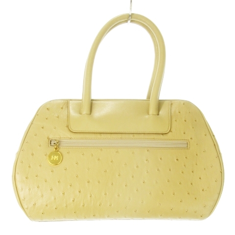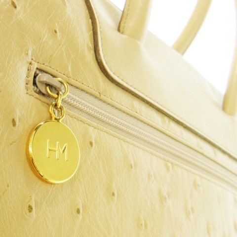 未使用品 ハナエモリ HANAE MORI ハンドバッグ レザー 革 オーストリッチ 切替 ベージュ /CK19 ■GY18 レディース