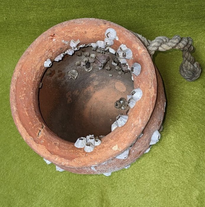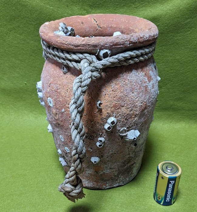 | 商品名 | 当時物■素焼き オブジェ★蛸壺 たこつぼ フジツボ付★焼物 アクアリウム 植木鉢 ガーデニング インテリア 古道具 漁具 紐縄付 タコツボ◎ |