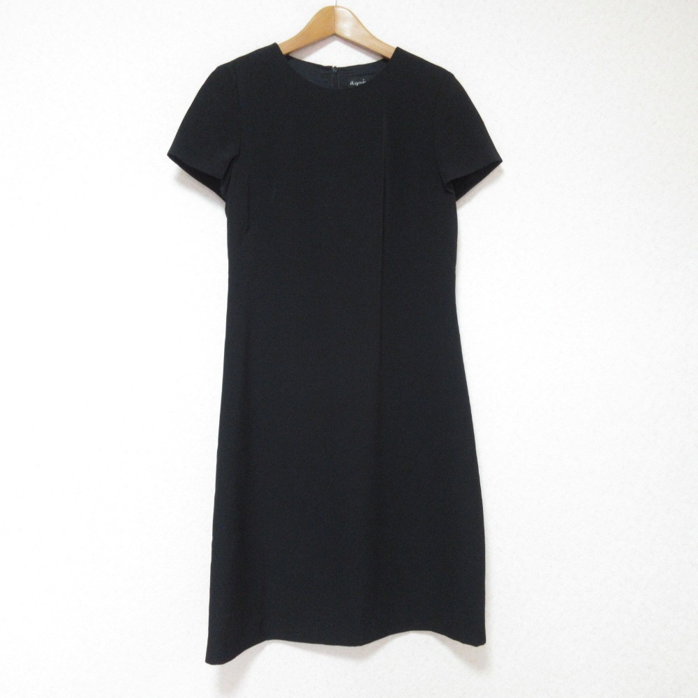 美品 agnes b アニエスベー 半袖 フォーマルワンピース 38 ブラック