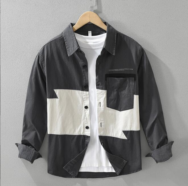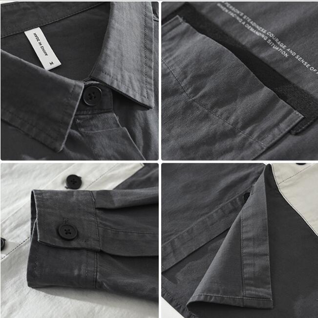 人気品シャツジャケット 春秋 長袖シャツ メンズ ワークシャツ カーゴ 切替 カジュアル コットン トップス グレー 3XL