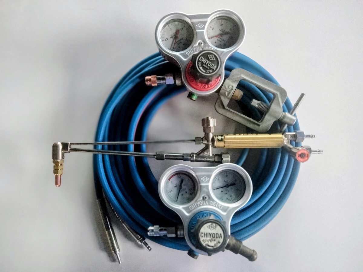 アセチレン・酸素共に、逆火防止付き(内蔵型)で安全です。