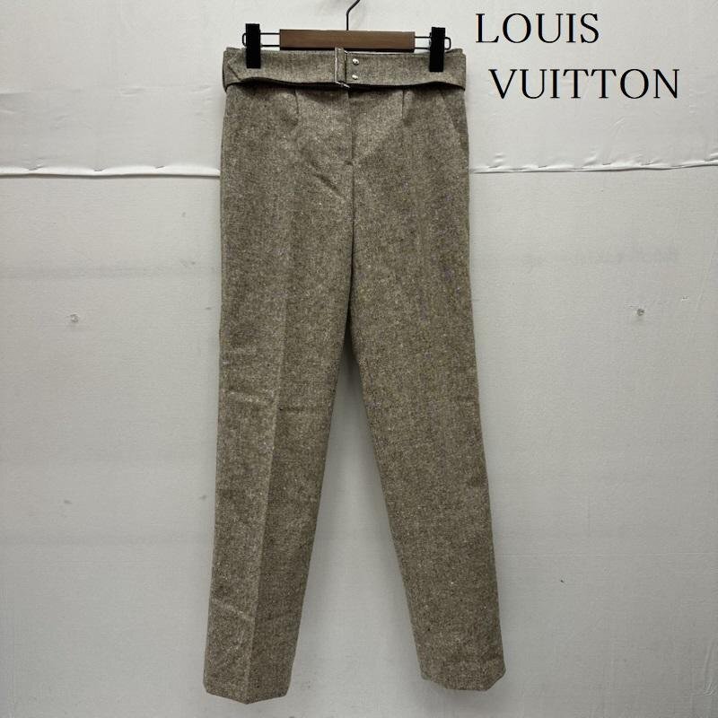 ルイヴィトン フランス製 ウール ツイード スラックス パンツ ベルト付 34