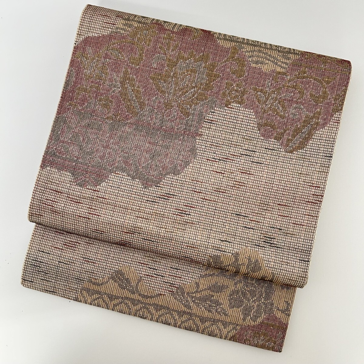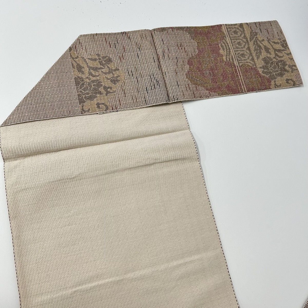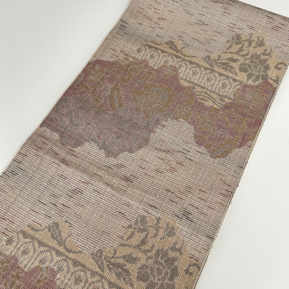 【楓】博多織 名古屋帯 正絹 織り柄の花唐草 八寸 KK-1633
