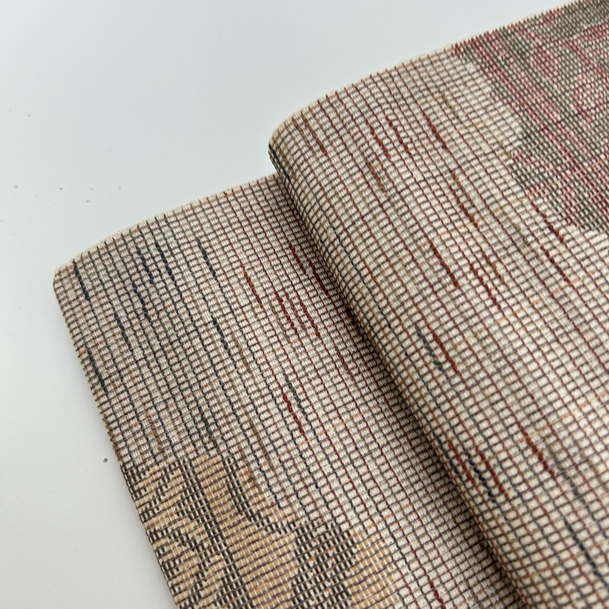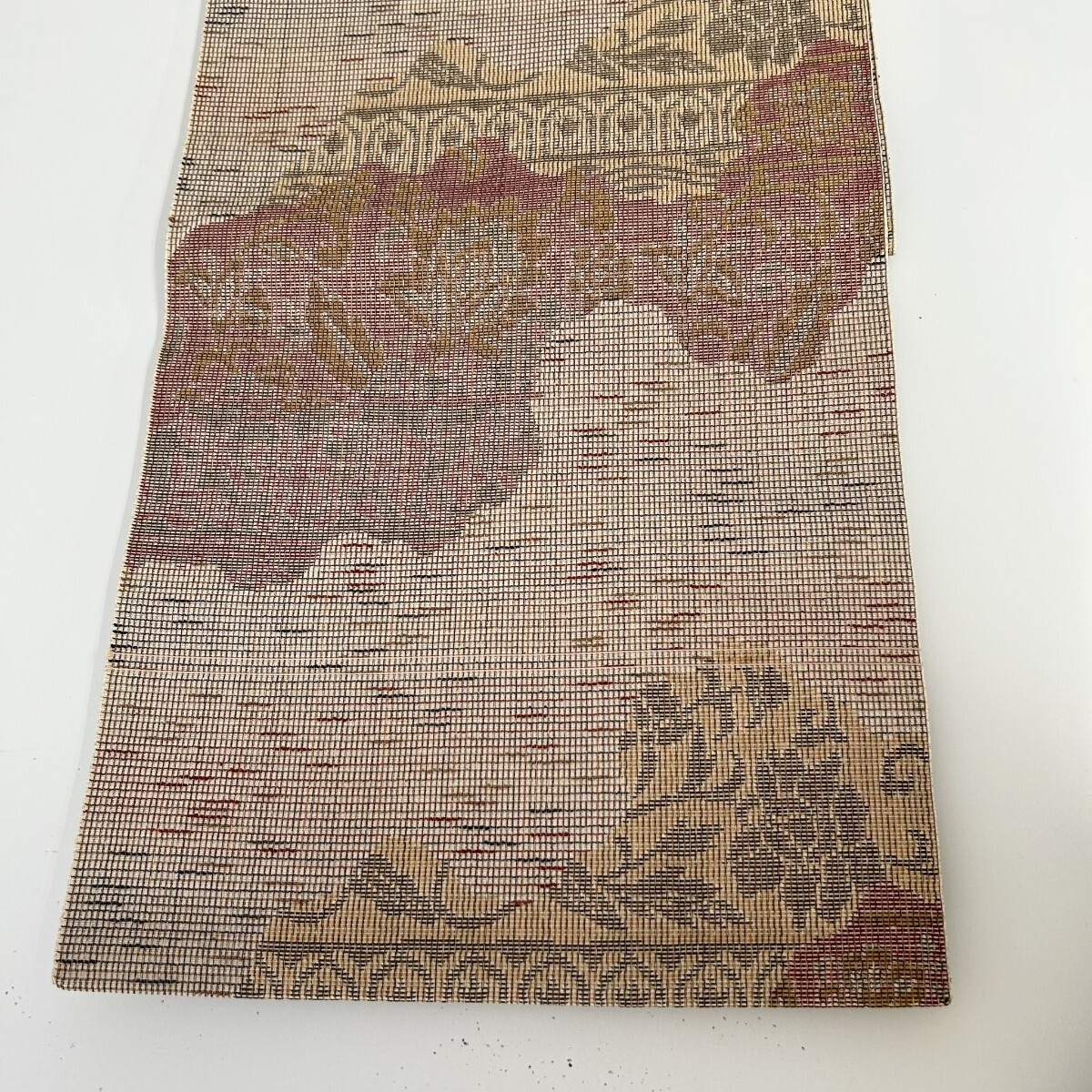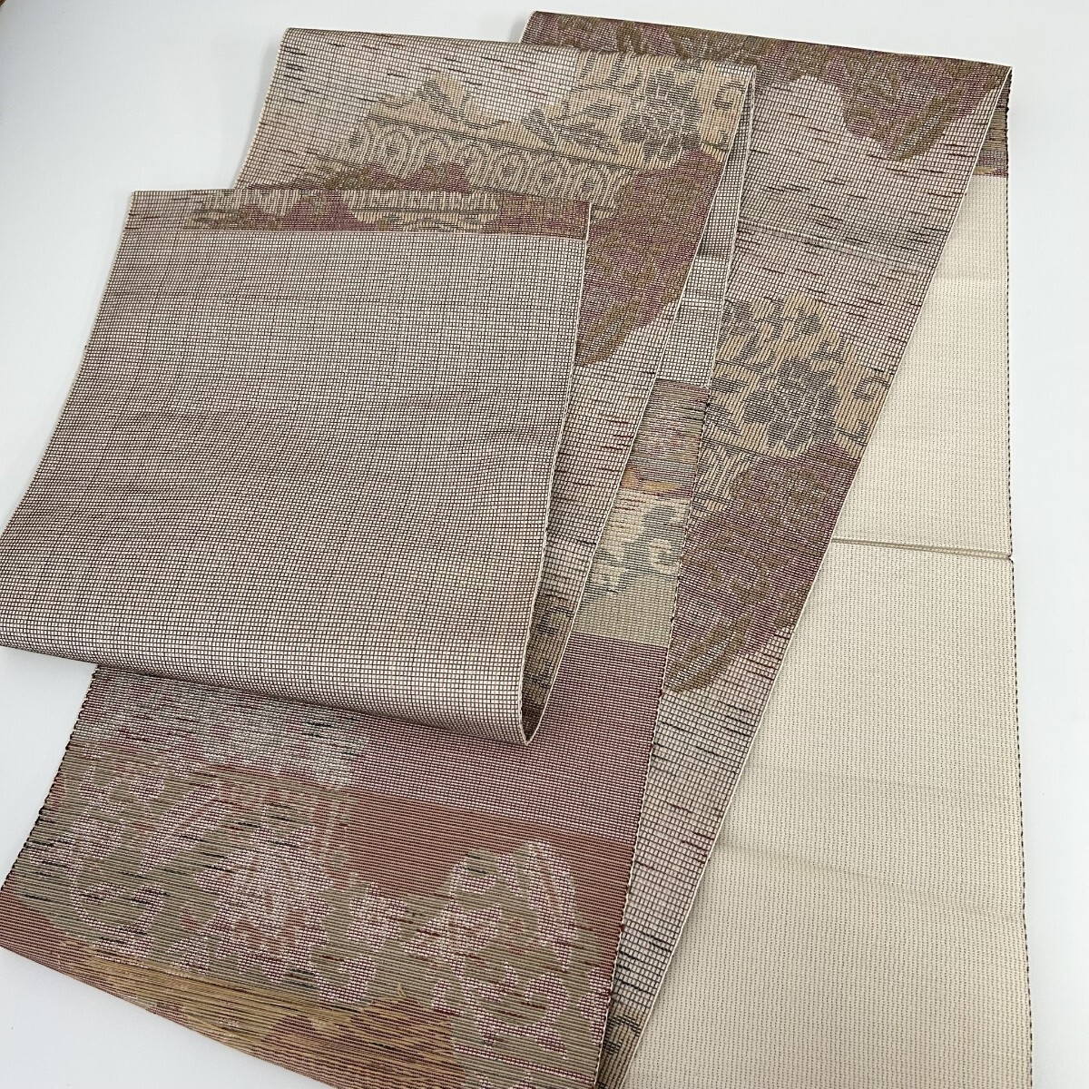 【楓】博多織 名古屋帯 正絹 織り柄の花唐草 八寸 KK-1633