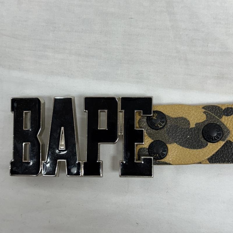 アベイシングエイプ BAPE ロゴ バックル カモフラ 迷彩柄 レザー ベルト ビッグサイズ 日本製 -