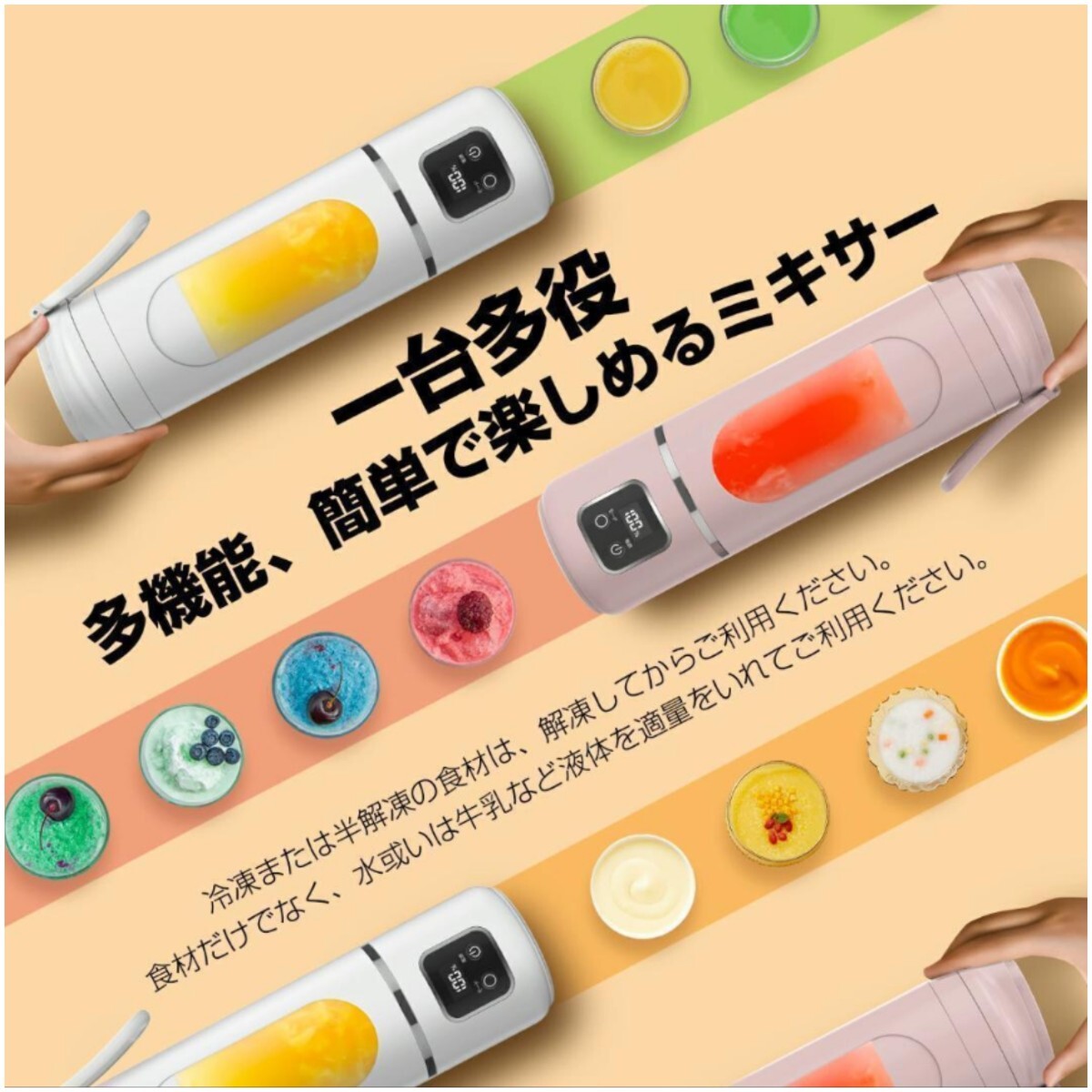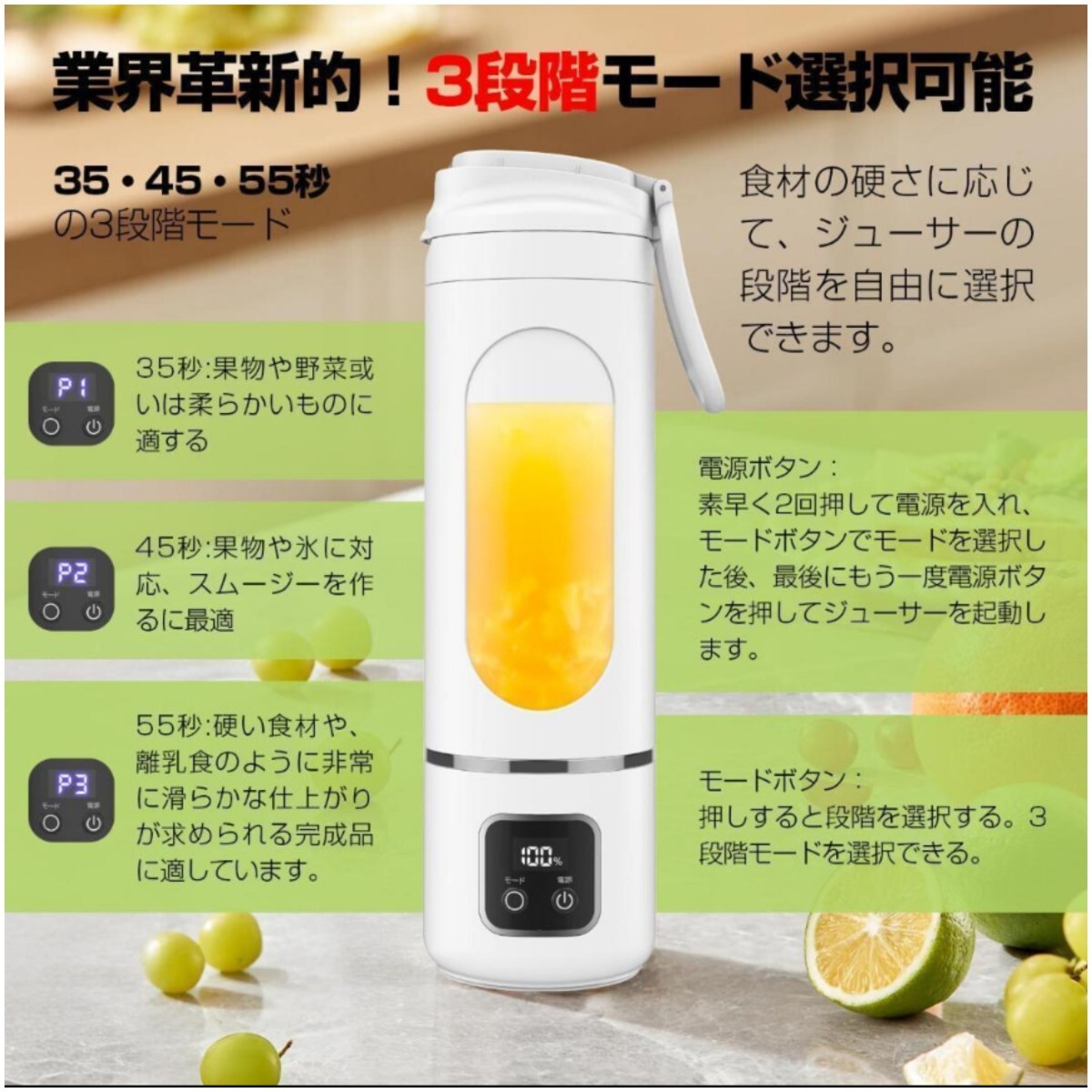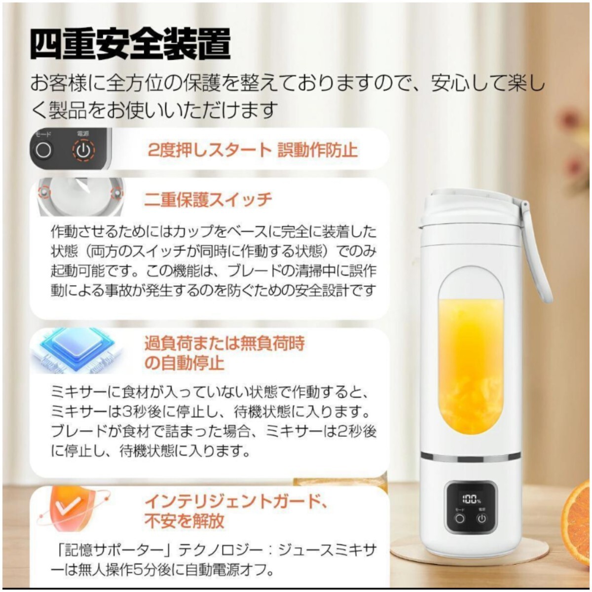 ホワイト ワイヤレス ミキサー ジューサー ワンタッチ操作