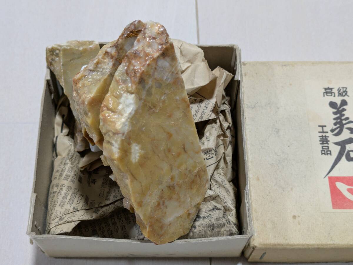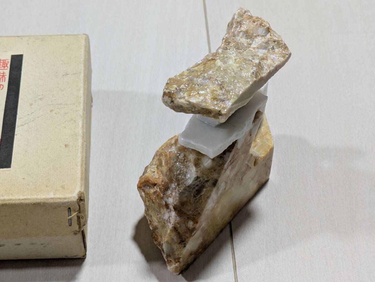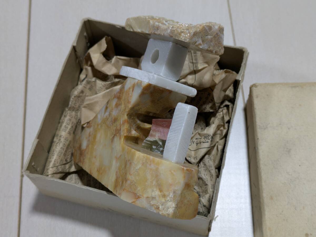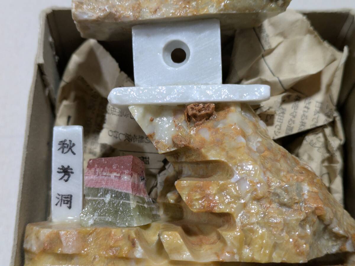 秋芳洞 美石 置物 石 燈籠風 年代物 昭和 レトロ オブジェ アンティーク 元箱有